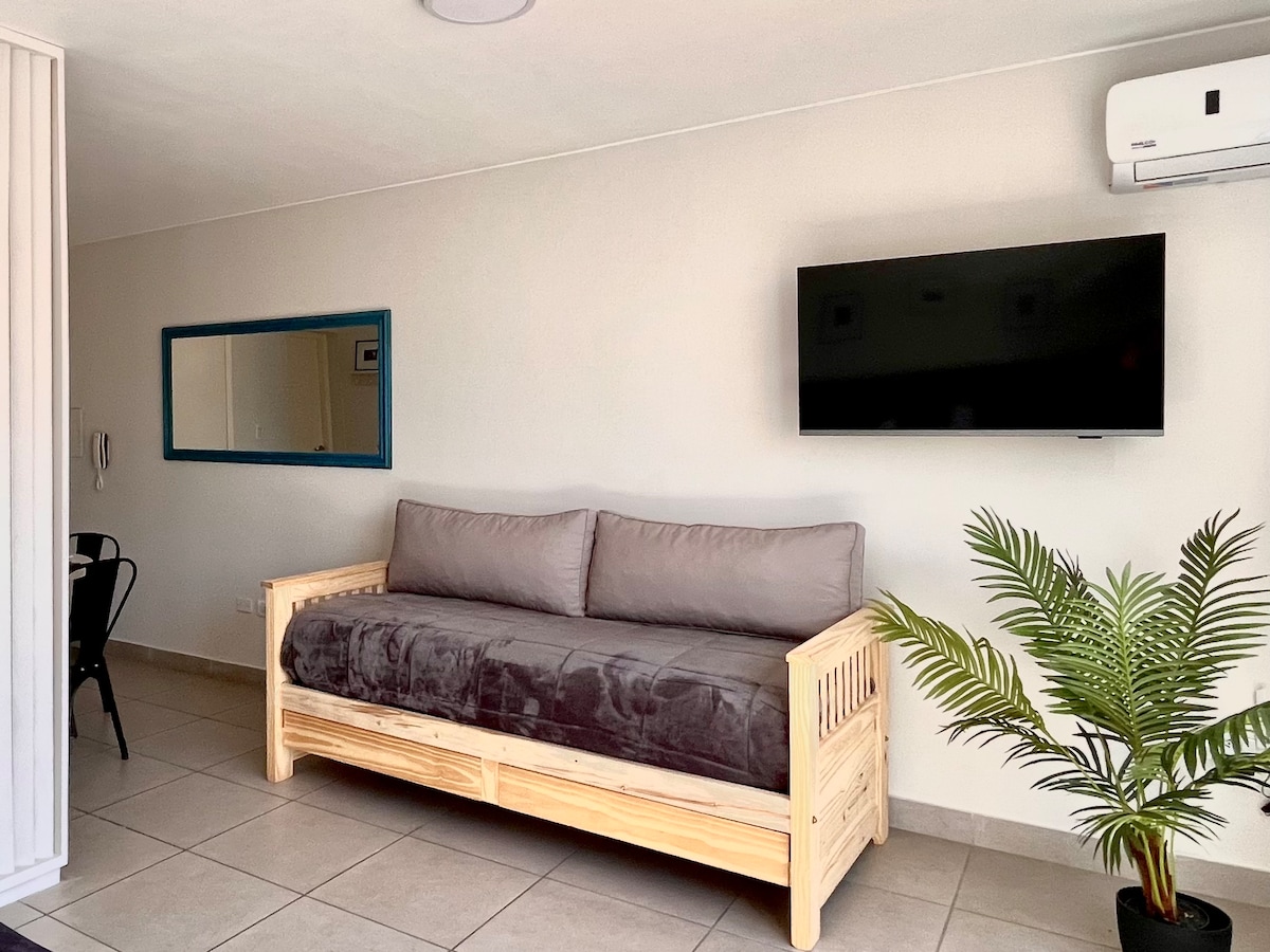 Brandneue, helle und warme Wohnung. Das Hotel liegt in der besten Wohngegend von Godoy Cruz, nur wenige Minuten von den wichtigsten touristischen Attraktionen von Gran Mendoza entfernt. Sie befindet sich in einer sicheren Gegend mit schnellem Zugang. Es verfügt über Klimaanlage und Zentralheizung in allen Räumen, Bettwäsche, eine voll ausgestattete Küche, einen Gefrierschrank, einen 49-Zoll-Fernseher, Netflix, WLAN, einen Balkon und eine überdachte Garage für ein Auto.