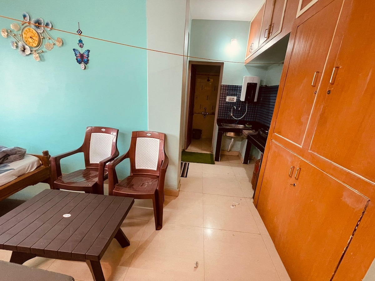 This is a 1Bhk Flat with two Beds and One AC, Best for Group travellers, Max 6-7 Guest can stay in very budgeted price 2500/day , Basic kitchen is there, fridge , wifi available Local shop is there u can buy groceries easily. Apartment is in crowded location near to everything, easily accessable for auto, shops, restaurants, beach. House rule:- Plz don't keep uncleaned utensils. No nuisance No loud music Gate opening time - 6am. Gate closing time 11pm.