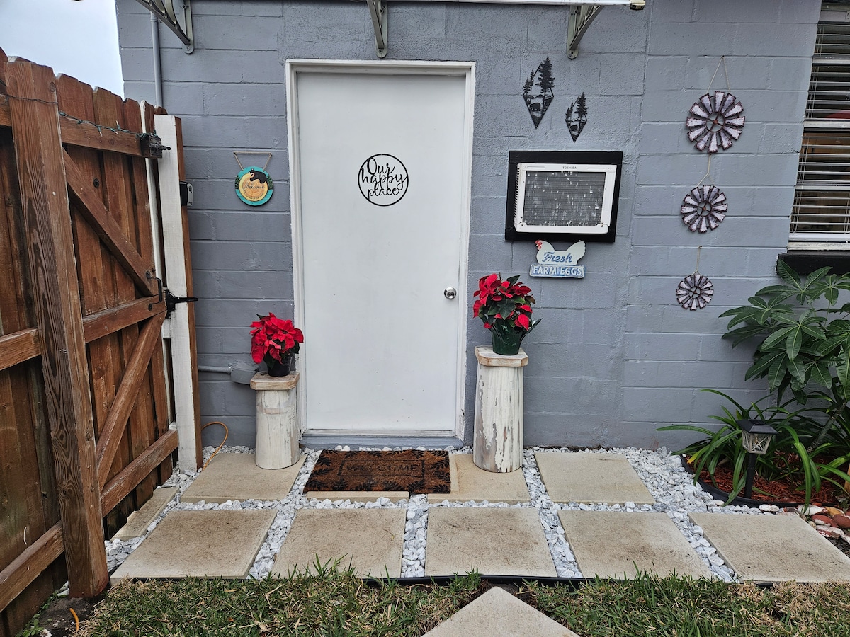 Willkommen in deinem ruhigen, geräumigen und privaten Refugium. Genieße alle neuen Geräte in der großen Küche, einen 50-Zoll-Flachbildfernseher und einen schattigen Außenbereich, der von viel Grün umgeben ist. Sie liegt nur wenige Minuten vom internationalen Flughafen Orlando Sanford, den Restaurants und Geschäften der historischen Innenstadt von Sanford und der malerischen Uferpromenade des Lake Monroe entfernt und liegt zentral zwischen Floridas Stränden und den Vergnügungsparks. **Der Raum wird mit von der EPA zugelassenen Reinigungsmitteln gereinigt, einschließlich Oberflächen, die häufig berührt werden**