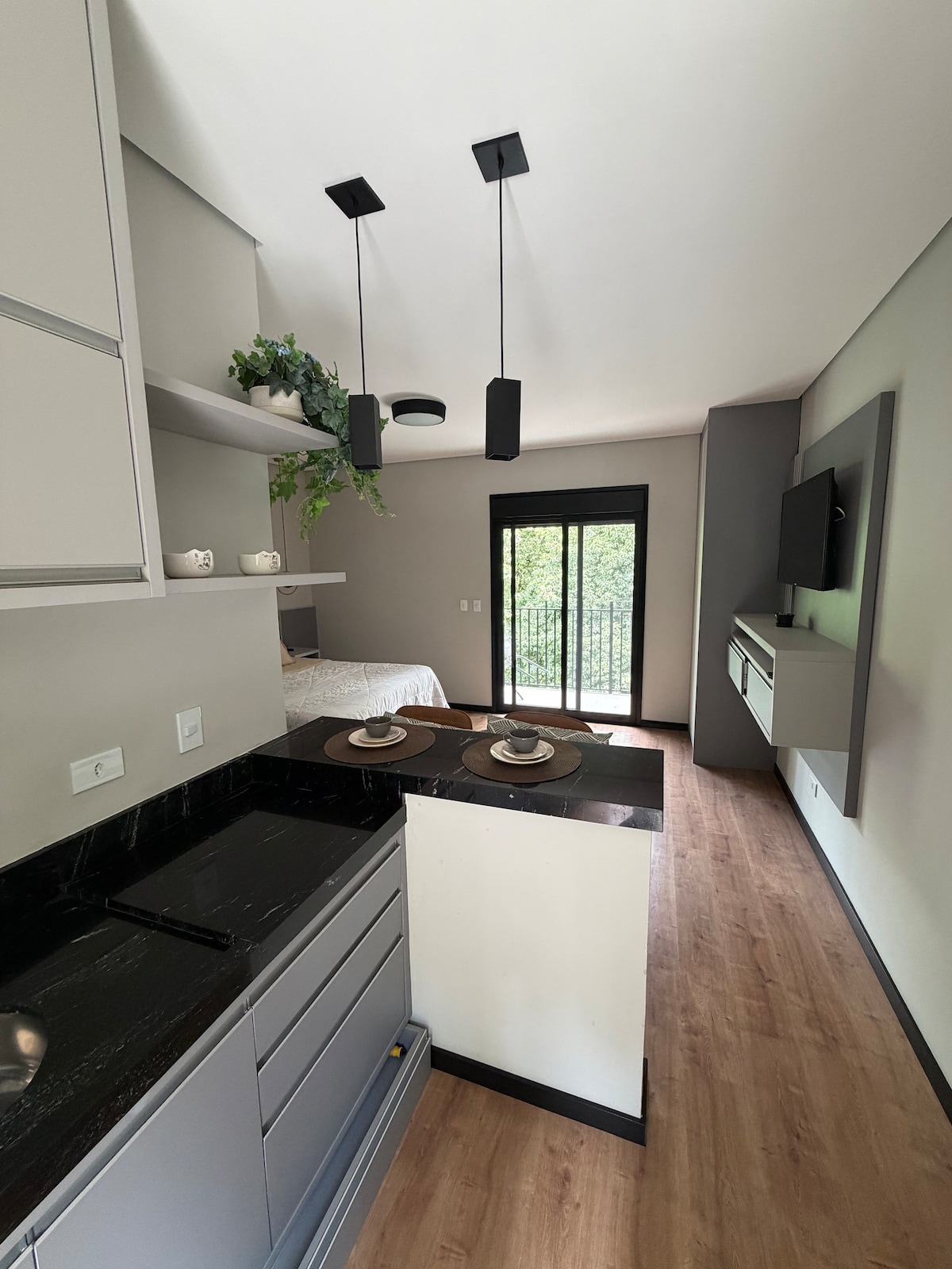Willkommen im Studio Essential. – Em 6 X W/INTEREST -Elektronische Uhr - Kostenloser Parkplatz - Kein abgegrenzter Leerstand - Studio - Obere Etage -Conceito Industrial - mit Holz, Ziegel und Metall - Internet mit WLAN - 600 MB - Smart-TV mit 32' - Streamings inklusive -Enxoval Cama - Completo -Enxoval Bath - Completo -Ausstattung - Shampoo/Conditioner/Seife -Cozinha - Kompakt, exklusiv und Utensilien inklusive -Lareira - Buchstäblich am Fußende des Bettes -Chuveiro Deca - 12L/min. à Gás
