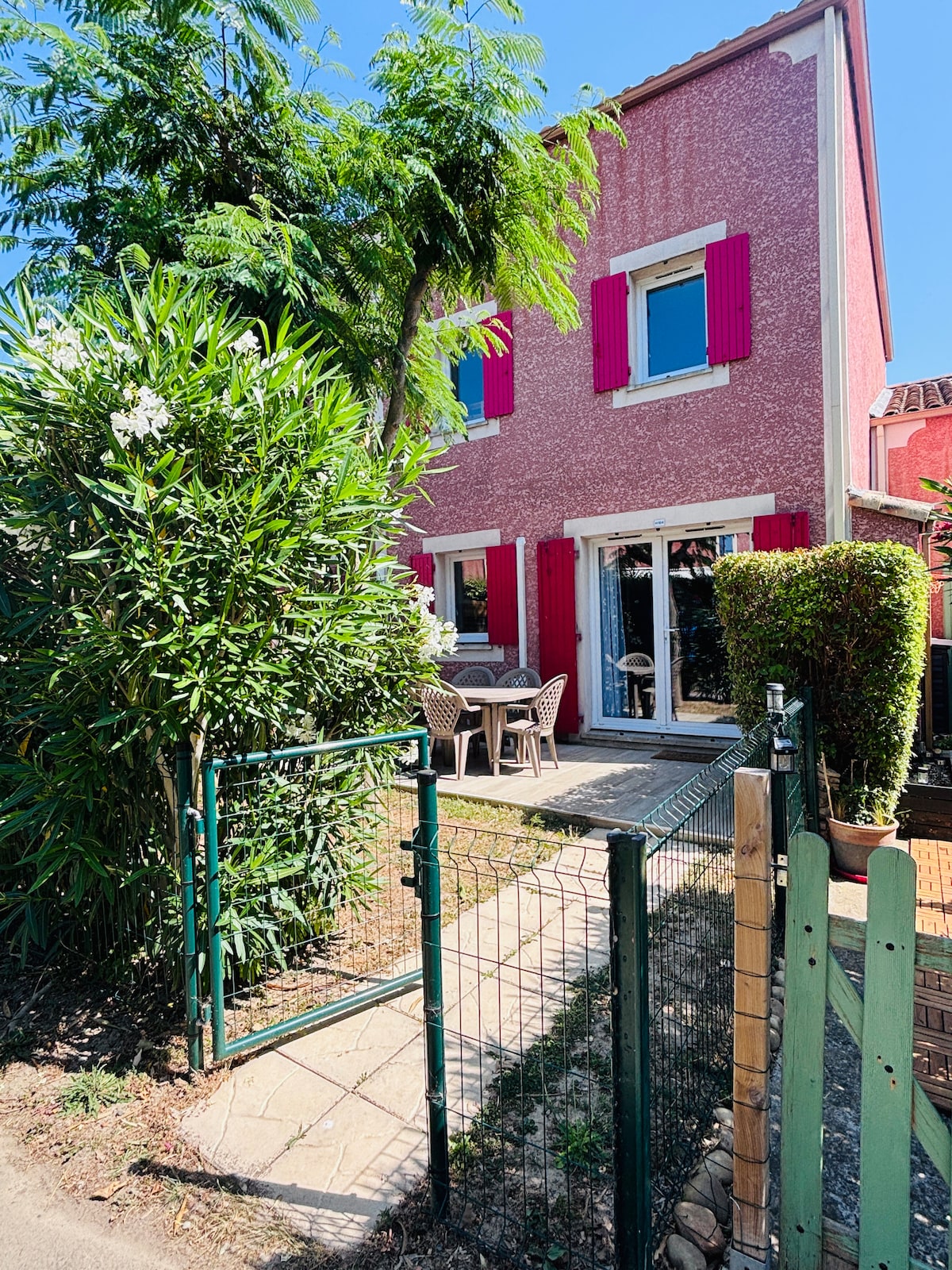 Ideal für einen Familienurlaub am Ufer des Canal du Midi. Charmantes Häuschen in ruhiger und sicherer Residenz mit Parkplatz und Garten, komfortabel. drei Pools, von denen einer im Winter überdacht und beheizt wird, ein Snack, der von April bis sieben geöffnet ist. Sie werden 15 Min. vom Meer, 1h30 von Spanien, 2 Std. von den Pyrenäen, 1 Stunde von Montpellier entfernt sein. Aber Sie können auch Wanderungen entlang des Canal du Midi (die 9 Schleusen von Fonseranes), guten Wein, Wassersportaktivitäten,...) genießen