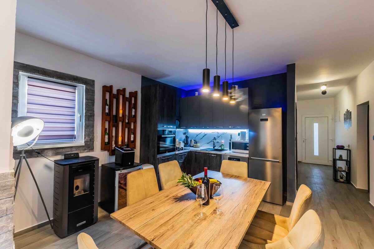 Luxury apartment Monta Bella is situated in the culturally rich Kastel Stari with beautiful mountain Kozjak on one side and the Adriatic sea on the other. All this can be seen from the hot tub (jacuzzi) on the terrace that overlooks most of Kastela towards Split. Our guests get to experience the full luxurious vacation since the listing is in a peaceful neighbourhood and packed with amenities such as a private parking space in the garage and many many more.