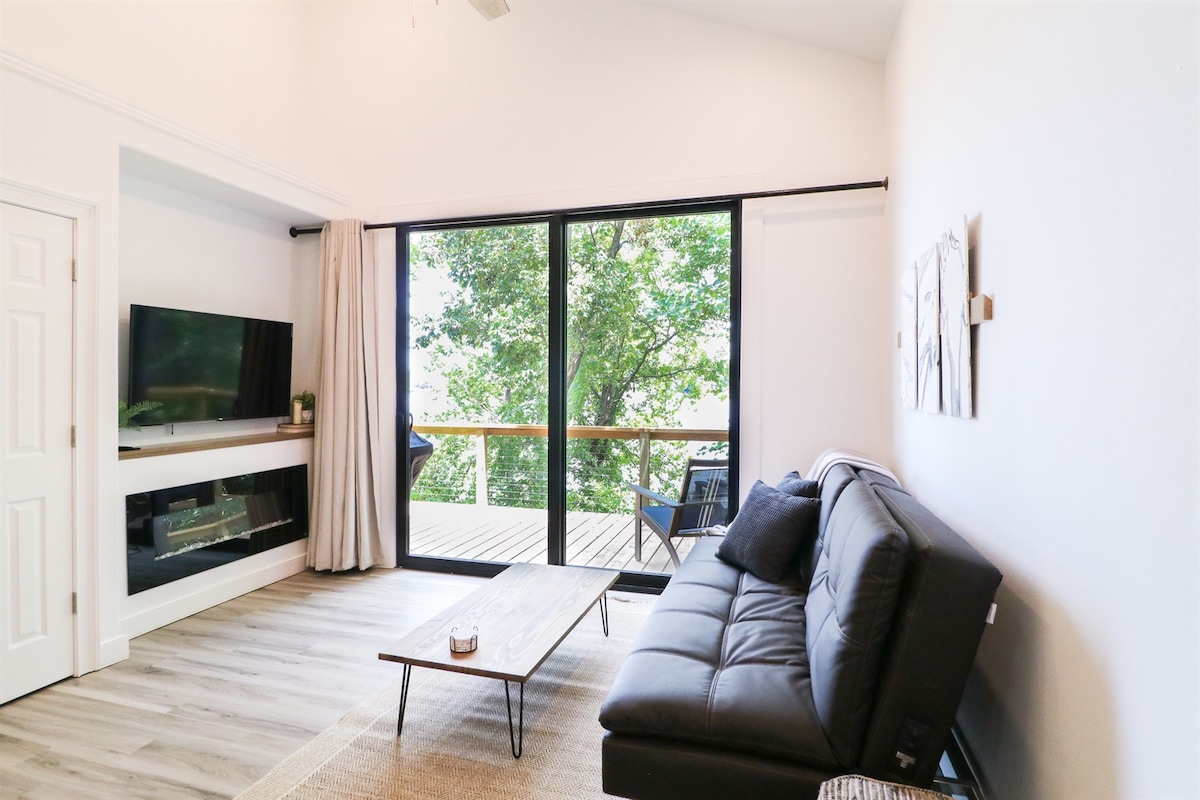 Entfliehe in diese gemütliche Ein-Schlafzimmer, Ein-Bad Seehütte mit atemberaubender Aussicht und modernem Komfort. Nur wenige Minuten von der Bootsrampe Wolf Creek, den Restaurants und der Innenstadt von Grove entfernt, ist es die perfekte Mischung aus Privatsphäre und Komfort. Genieße den Seeblick vom Wohnzimmer, Kaffee auf der abgeschirmten Veranda und Sonnenuntergangsabende an der Feuerstelle. Mit gemeinsamem Zugang zum Dock, Bootsanleger und Betonparkplatz ist es ideal zum Bootfahren, Angeln oder einfach nur zum Entspannen am Wasser – perfekt für Paare, Familien oder Turnieraufenthalte.
