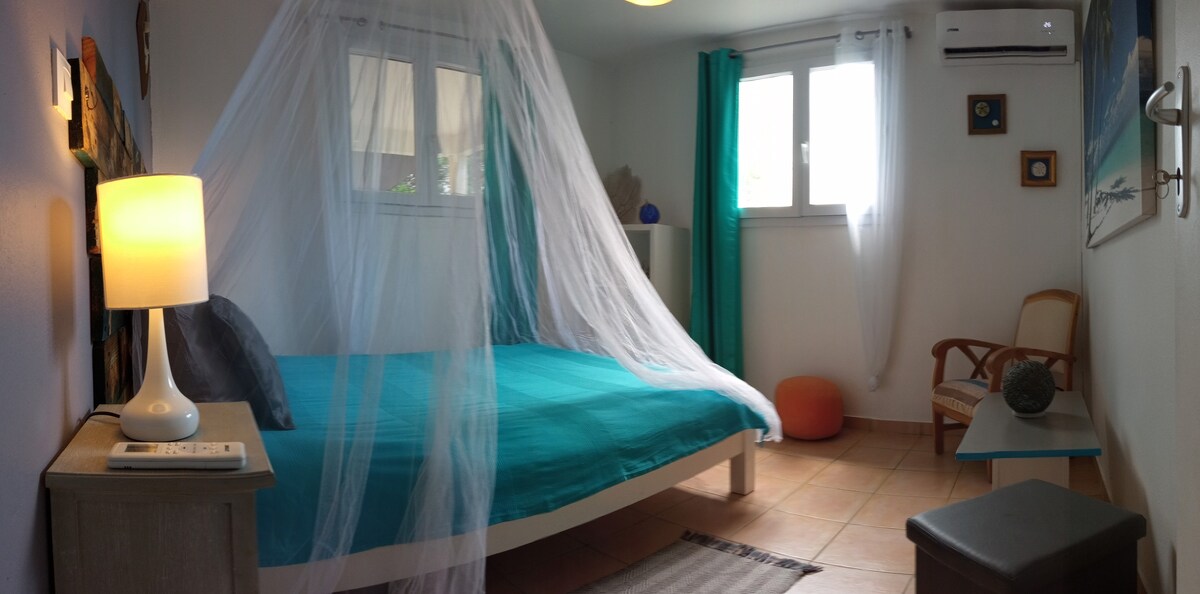 Dies ist der Raum, der einen unverwechselbaren Eindruck hinterlässt, indem er unsere farbenfrohe Kunstfertigkeit in ihrer ganzen Fülle zum Ausdruck bringt! Innerhalb von 10 Minuten von den schönsten Stränden entfernt, ist dieses gut ausgestattete 3-stöckige Anwesen für jeden Kunstliebhaber geeignet. Diejenigen, die grüne Schwingungen und Prärie, Körperentspannung und Seelenverjüngung lieben. Dies ist unsere Hauptgästesuite in unserem Künstlerharem, willkommen bei Blue Ultramarine.... Eine riesige, komplett ausgestattete Suite ganz für dich zwischen Sainte-Anne, Saint-François und Moule.