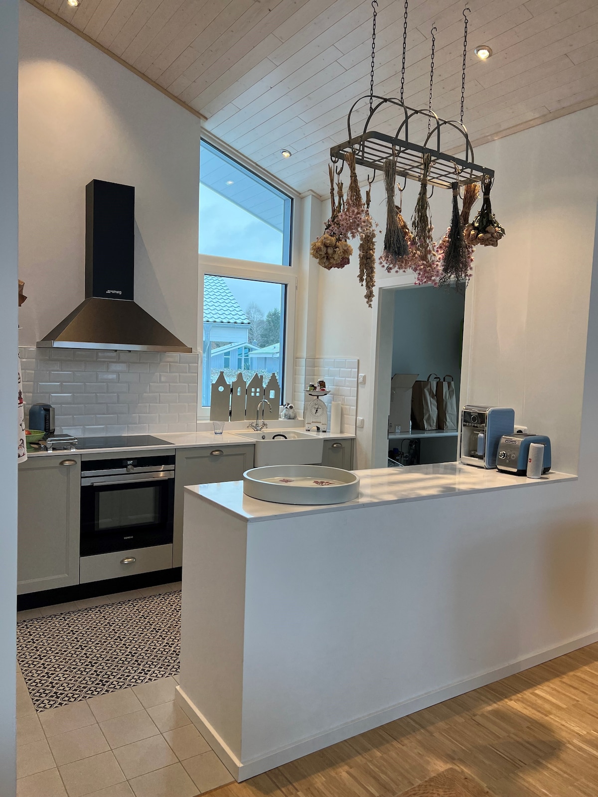 Entspann dich und genieße die Natur im Garten und im Müritz-Nationalpark zu Fuß, mit unseren 2 Fahrrädern oder mit dem SUP auf dem Wasser. In unserer voll ausgestatteten Küche (2-Feld Induktionskochplatte, Spülmaschine, Espressokocher, Kühlschrank, Mikrowelle, Kaffee und diverse Gewürze) kannst du mit einem uneingeschränkten Blick in den Garten und mit Zutaten aus unserem Garten frische Speisen zubereiten. Die nach außen ragende Badewanne, wie auch unser Daybed, laden zur Entspannung ein.