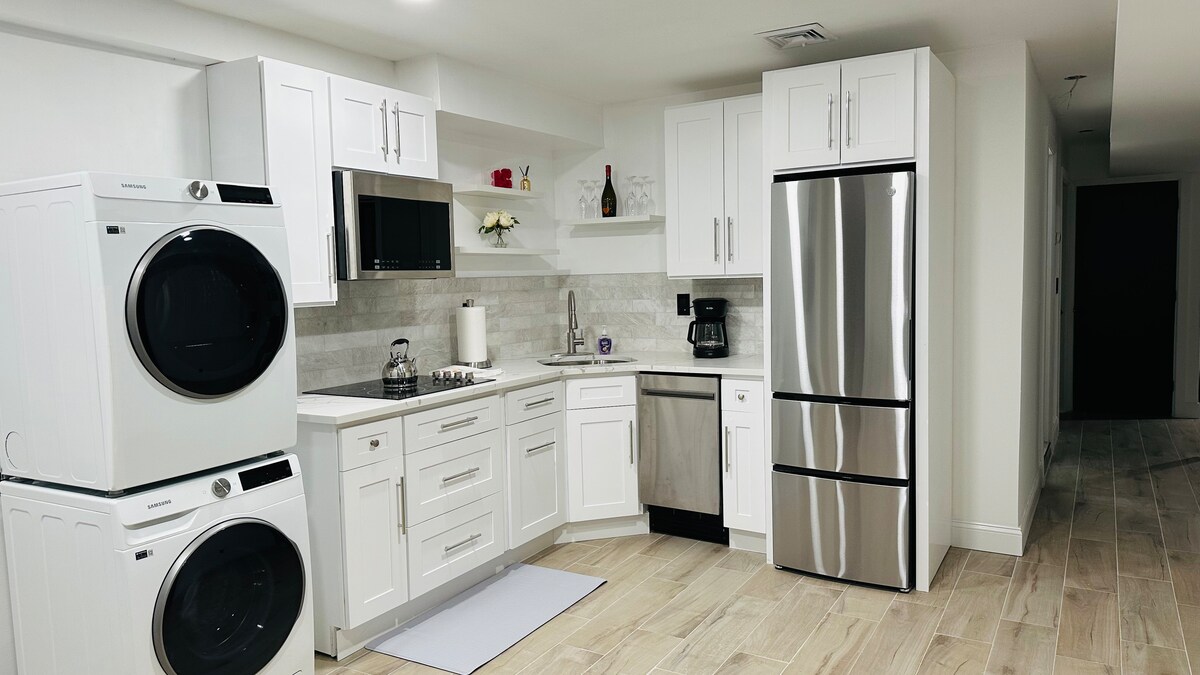 Entspanne dich in dieser neu renovierten und luxuriösen privaten Wohnung in den Vororten von Long Island, nur 45 Minuten von der legendären Stadt New York entfernt. Dieser moderne Raum ist mit allen Annehmlichkeiten ausgestattet, die du benötigst, um einen stressfreien und ruhigen Aufenthalt zu genießen. Genieße dieses einzigartige Erlebnis und bleibe dabei in der Nähe von allem ... öffentlichen Verkehrsmitteln, Sehenswürdigkeiten, Restaurants, Geschäften, Einkaufszentren, Feinkostläden, Abenteuern, Stränden, Parks, Wanderwegen, Bibliotheken, Stadien, Autobahnen, Flughäfen und vielem mehr.