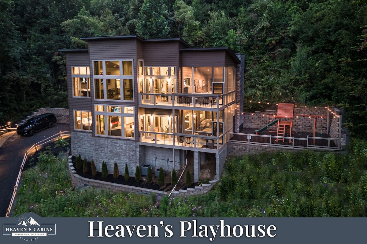 Luxury Contemporary Cabin! Fireplaces! Playground!