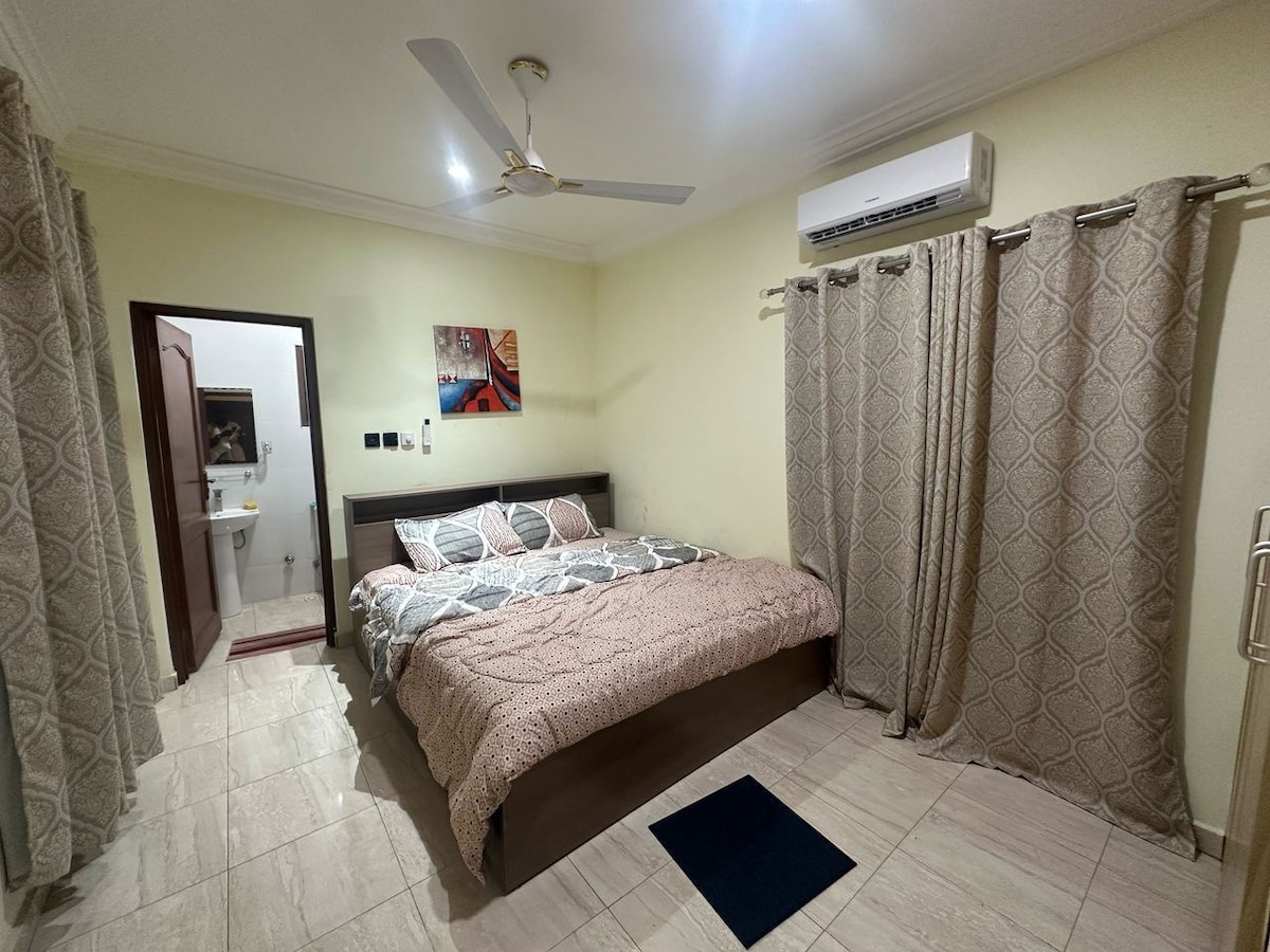 Wunderschöne und geräumige 2-Zimmer-Wohnung mit Kingsize-Betten, ideal für kurze und lange Aufenthalte in Accra. Die Wohnung ist komplett ausgestattet mit Netflix, kostenlosem Highspeed-WLAN, Klimaanlage in jedem Raum und Küche. Bettwäsche und Handtücher stehen Gästen zur Verfügung. Der gesamte Raum ist privat, geräumig und komfortabel in einem sehr schönen und trendigen Viertel mit auch privater Sicherheit. Supermärkte und Apotheken gleich auf der anderen Straßenseite. Coffeeshops und Restaurants 2 Gehminuten entfernt. Flughafen 10 Minuten Fahrt.