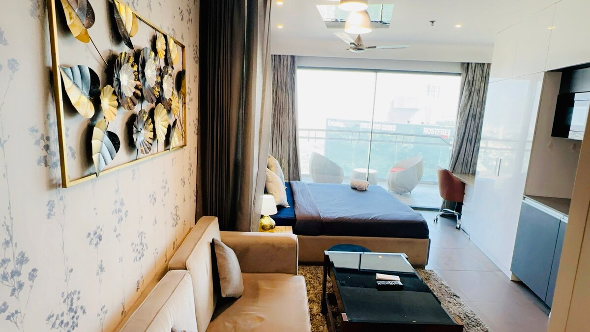 Wir präsentieren unsere exquisite Luxus-Studio-Wohnung: Eingebettet im Herzen der Stadt, bietet dieses opulente Studio moderne Eleganz und unvergleichlichen Komfort. Das offene Design lädt dich in einen geräumigen Rückzugsort ein, der von natürlichem Licht durchflutet wird, das durch die großen Fenster eindringt, die einen atemberaubenden Blick auf die Stadt bieten. Diese Wohnung befindet sich im 41. Stock in einem der höchsten Wolkenkratzer in Delhi – NCR. Die Wohnung hat einen Blick auf den Fluss vom Balkon!!