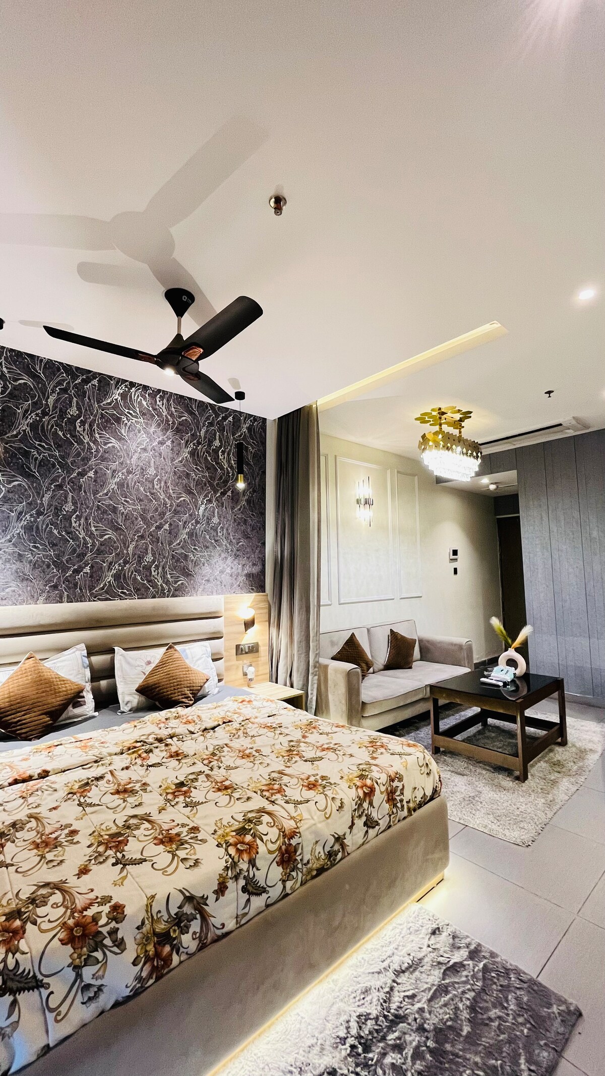 Modernes Studio-Apartment im Galaxy Blue Sapphire Plaza, Greater Noida West Übernachten Sie in einem stilvollen, komplett möblierten Studio in der Galaxy Blue Sapphire Mall.Perfekt für Geschäfts- oder Urlaubsreisen, mit gemütlichem Bett, WLAN, Smart-TV, Kochnische und sauberem Badezimmer.Einkaufsmöglichkeiten, Restaurants und Unterhaltungsmöglichkeiten sind nur wenige Schritte entfernt, außerdem gute Anbindung an U-Bahn und Straßen.Ideal für Alleinreisende, Paare oder längere Aufenthalte.