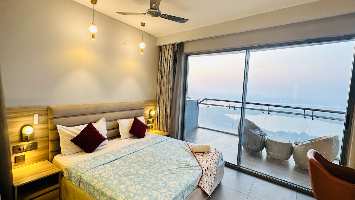 Schwebe über der Stadt in diesem friedlichen Hochhaus mit Panoramablick auf den Fluss Yamuna und die Skyline. Egal, ob du einen romantischen Urlaub, eine Geschäftsreise oder einen Urlaub machst, Cloud 33 ist sowohl für Komfort als auch für Stil konzipiert. ✔ Beste Lage – Nur 100 m von der U-Bahn entfernt für einfachen Zugang zur Stadt ✔ Malerische Aussicht – privater Balkon mit Fluss + Skyline-Sonnenuntergänge ✔ Ideal für Paare & Profis – gemütlich, modern, voll ausgestattet