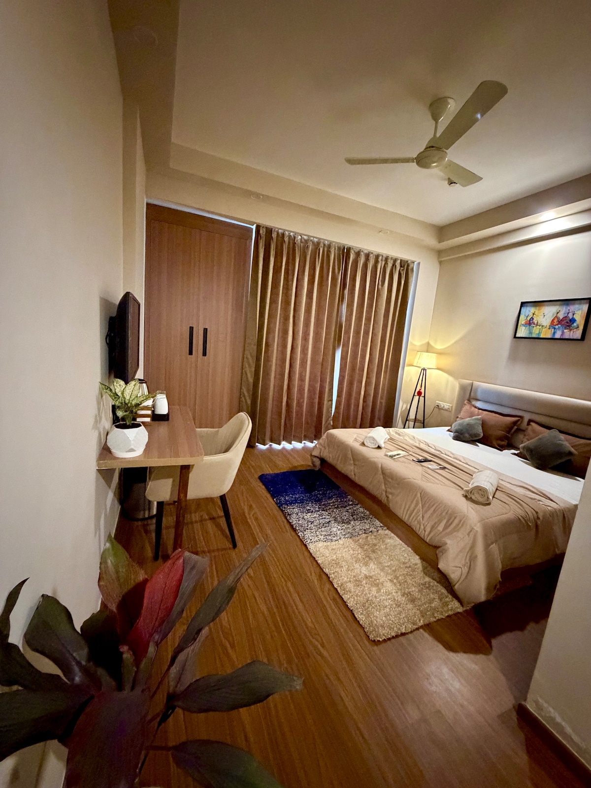 Die Desla-Suiten bieten: 👉🏻 Hochwertiger Aufenthalt 👉🏻 Höflicher und reaktionsschneller Gastgeber 👉🏻 5 Autominuten vom Messegelände entfernt. 👉🏻 Highspeed-WLAN🛜 👉🏻 Smart-LED-Fernseher von Samsung 🖥️ 👉🏻 Voll klimatisiert 👉🏻 Geysir für ein heißes Bad🛁 👉🏻 Bügeleisen mit Bügeleisenständer 👉🏻 Balkonbereich mit schöner Aussicht zum Chillen und Entspannen 👉🏻 Eigenständiger Check-in 🔐 👉🏻 Minikühlschrank 👉🏻 Grundlegende Küchenutensilien für Tee und Kaffee ☕️ 👉🏻 Abgetrennter Arbeitsbereich 🧑💻 Eine zusätzliche Matratze auf dem Boden steht ebenfalls für 200 Rs/Nacht zur Verfügung.
