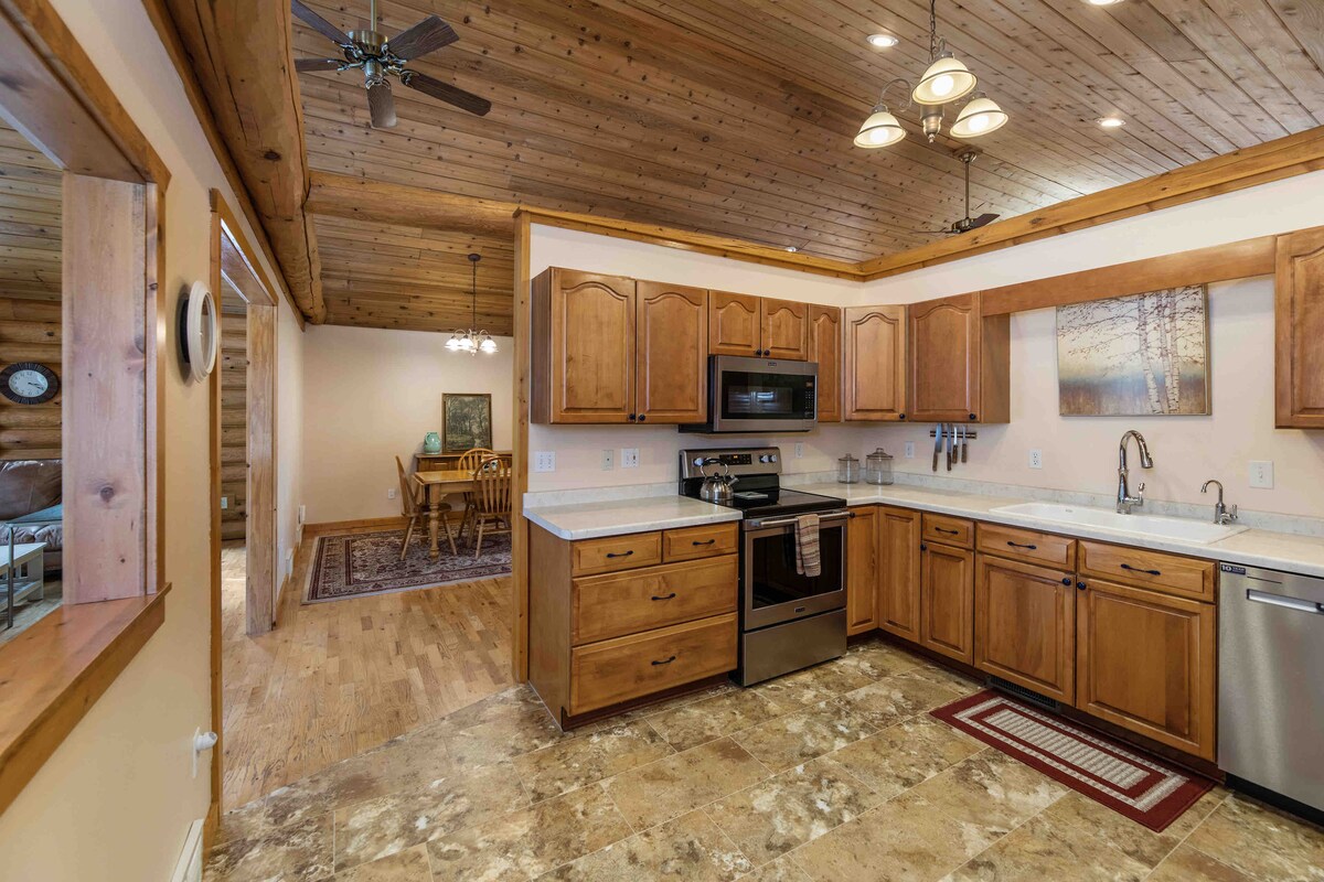 Entspanne dich in unserer Blockhütte nur wenige Minuten vom Big Green Lake entfernt! Genieße die malerische Aussicht auf den Wald, 2 Blocks von Rileys Irish Pub und 0,2 Meilen von der Bootsanlegestelle des County Park entfernt. Mit über 3.800 Quadratfuß ist unsere moderne Hütte perfekt für deinen Rückzugsort. Hab Spaß in der Kellerbar mit einem 65-Zoll-TV oder koche auf der großen Terrasse mit Aussicht! Ausreichend Parkplätze für große Gruppen mit zwei beheizten Garagenplätzen innen. Bring dein Boot oder deine Schneemobile mit – viel Platz zum Wenden.