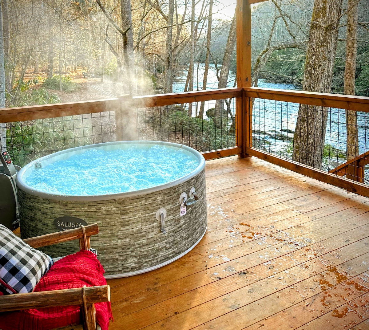 Wenn du ein begeisterter Angler, Skifahrer oder einfach nur totale Entspannung suchst. Die Hütte liegt direkt am North Toe River. Die voll möblierte Hütte mit 2 Schlafzimmern ist so bequem und gemütlich, wobei an jedes Detail gedacht wurde. Der Whirlpool mit Blick auf den Fluss und die Feuerstelle mit Holz ist eine großartige Möglichkeit, den Tag im Freien zu verbringen… Wandern, Fliegenfischen, Tubing, Kajakfahren oder einfach nur Entspannen und beobachten, wie die Wildtiere vorbeikommen, ist eine großartige Möglichkeit, den Tag zu verbringen. Restaurants, Weingüter, Skifahren und Einkaufsmöglichkeiten in der Nähe.