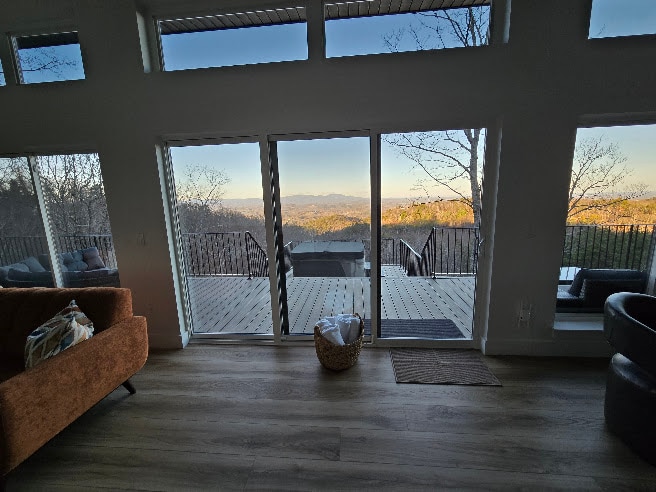Willkommen im Butter Street Retreat! Ein privater Rückzugsort in den Baumkronen mit Panoramablick in den Ausläufern der Blue Ridge Mountains auf sieben abgelegenen Hektar. PERFEKT FÜR EINEN GEMÜTLICHEN, ROMANTISCHEN KURZURLAUB ODER EINEN FAMILIENURLAUB. Entwickelt für Ruhe, Entspannung und Wiederverbindung! 🌄 Sonnenuntergang mit Bergblick 🌊 Whirlpool Holzofen im🔥 Innenbereich + Lagerfeuerstelle im Freien 🏝privater Salzwasserpool (saisonal beheizt) ☕️ gut sortierte Kaffeebar 🎮 Spielzimmer mit Arcade, Dartscheibe, Nintendo, Sega Genesis, Smart-TV