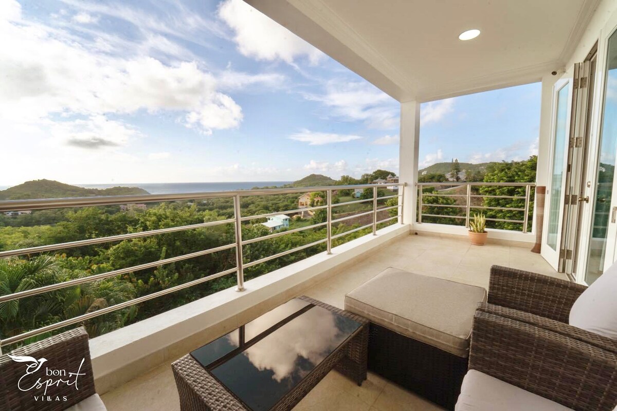 Eine exquisite, moderne Villa mit 2 Schlafzimmern in Cap Estate, Saint Lucia. Jedes Schlafzimmer verfügt über ein eigenes Bad mit zwei Panoramablicken auf den Atlantik und das Karibische Meer. Die Küche ist gut mit modernen Geräten ausgestattet. Ein Tauchbecken zum Entspannen, während du die beruhigende Aussicht oder atemberaubende Sonnenuntergänge genießt. Wir sind 10-15 Minuten Fahrt von Rodney Bay entfernt.
