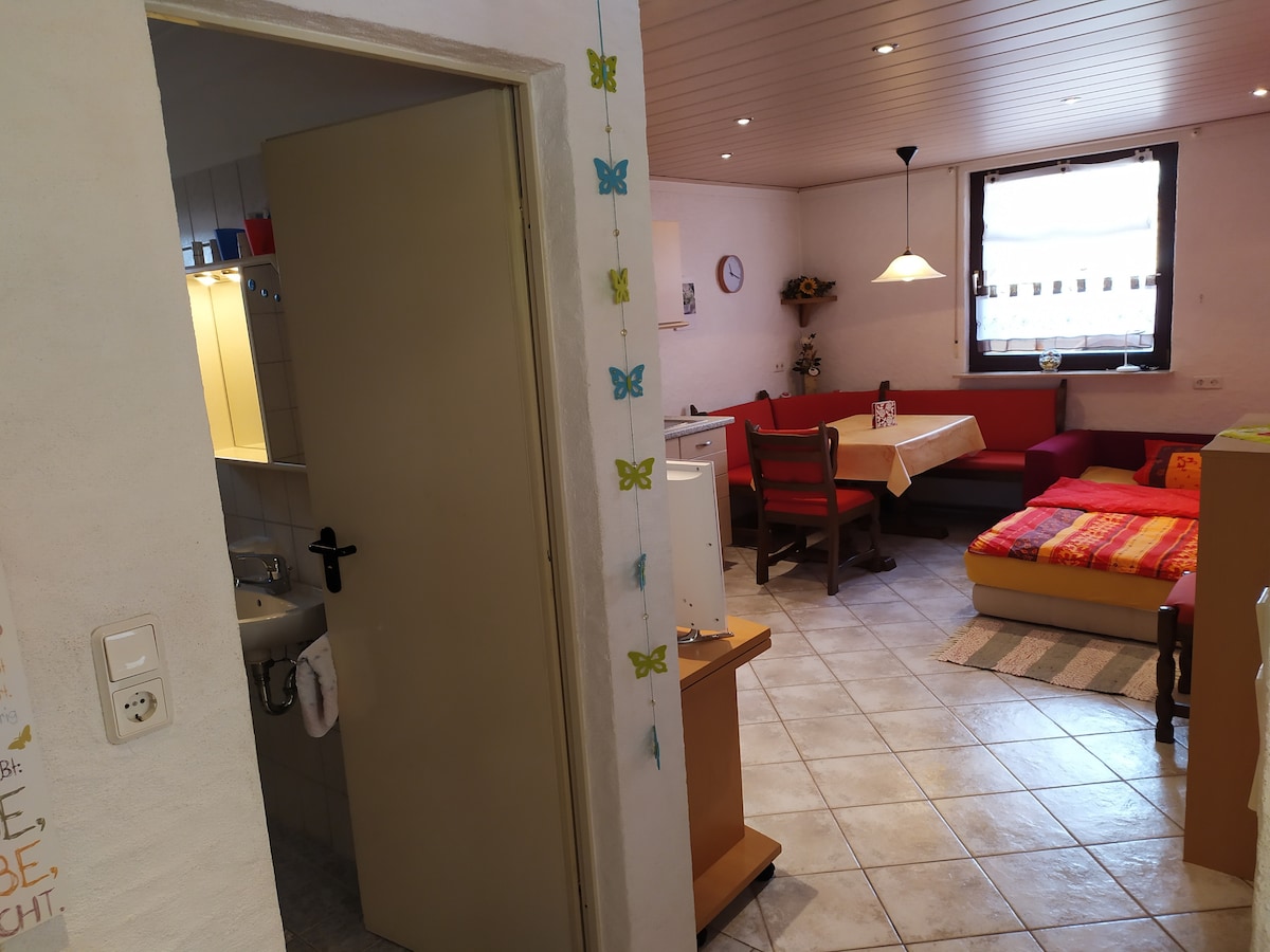 Das Apartment so ( rund 18 qm ) hat ein bequemes Schlafsofa für zwei Personen und eine gut ausgestattete Küche sowie eigenes Bad mit Dusche. Es liegt im Anbau des Hauses und hat somit einen seperaten Eingang der im Wintergarten lieg . Somit ist Privatsphäre garantiert. Wir wohnen in einem kleinen ruhigen Ort nahe Bad Kisssingen. 8 Km von der schönen Kurstadt Bad Kissingen. 16 Km bis Bad Neustadt. 25 km zum Naturreservat Rhön mit dem Kloster Kreuzberg. Zur Industriestadt Schweinfurt 24 Km.
