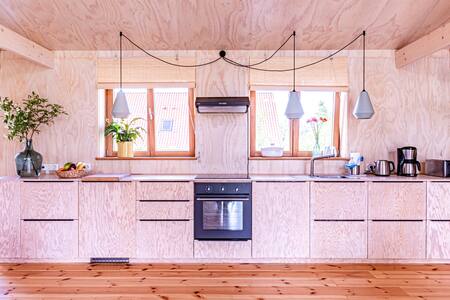 Dieses neu erbaute Refugium für Familien und Paare vereint Nachhaltigkeit, modernes Design (Ausgewählt für den Tag der Architektur 2024) und Funktionalität für einen erholsamen Aufenthalt im Einklang mit der Natur. Das Ferienidyll ist von Berlin aus mit dem Zug in 90 Minuten erreichbar und bietet kostenloses WLAN, einen Kaminofen für gemütliche Abende, Grillmöglichkeiten für BBQ-Liebhaber, einen weitläufigen Garten und einen kostenlosen Privatparkplatz mit einer E-Ladesäule auf dem Grundstück.