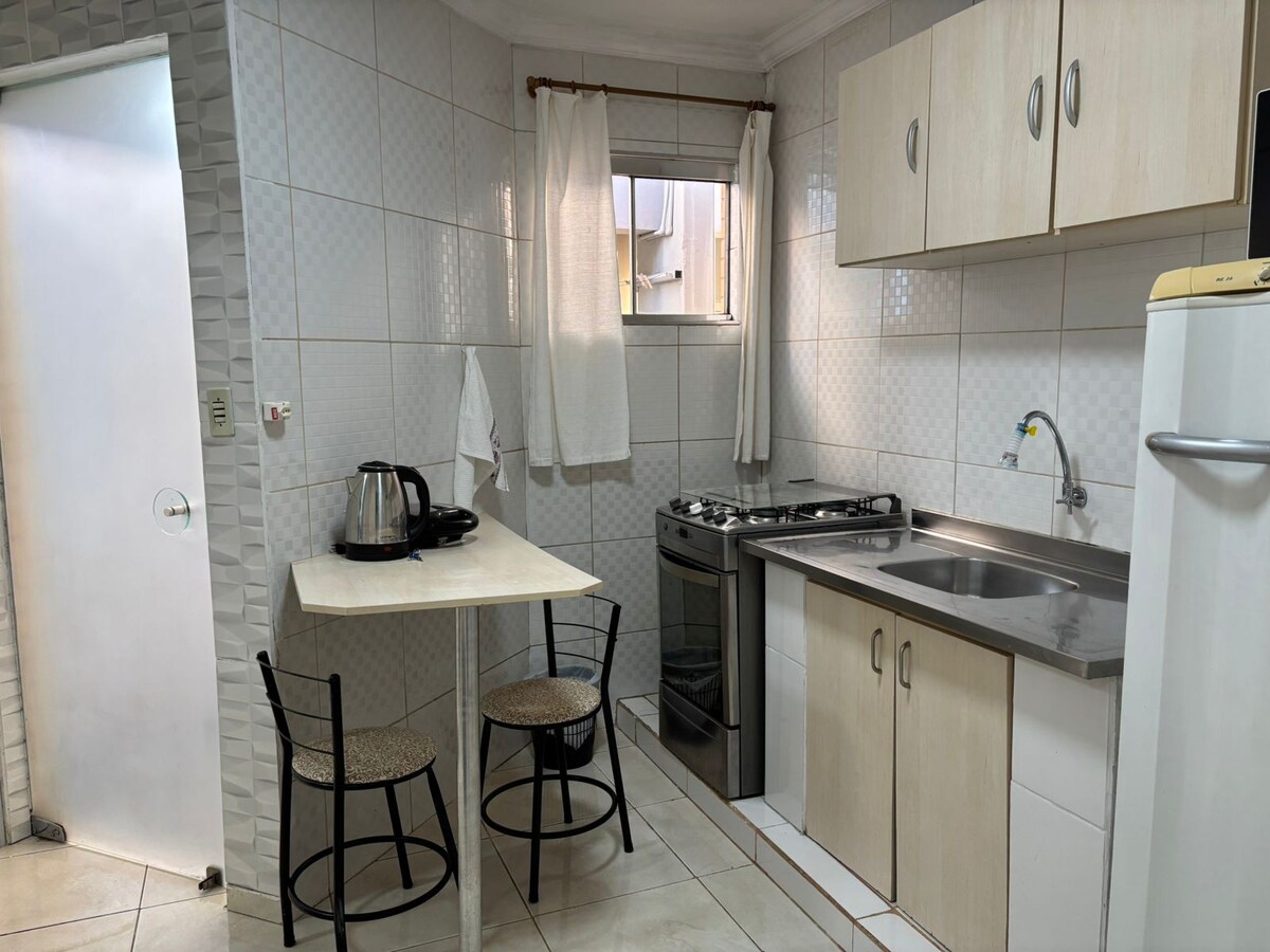 Das Studio hat eine großartige Lage, vor dem Busbahnhof und in der Nähe von Apotheken, Supermarkt, Pizzeria… Es ist VERBOTEN, Personen mitzubringen, die nicht in der Buchung registriert sind (gib die Anzahl der Gäste in der Buchung an). Es sind keine Partys ERLAUBT! Die Unterkunft: Zimmer mit Doppelbett, Wohnzimmer mit Doppelbett, einem Sofa und einer Luftmatratze, wodurch die komfortable Unterbringung von bis zu 6 Personen möglich ist. Ort für ein Fahrzeug entdeckt! Zusätzlicher Platz R$ 30,00 pro Fahrzeug. ️OBS: DERZEIT NICHT VERFÜGBARE BADEWANNE!