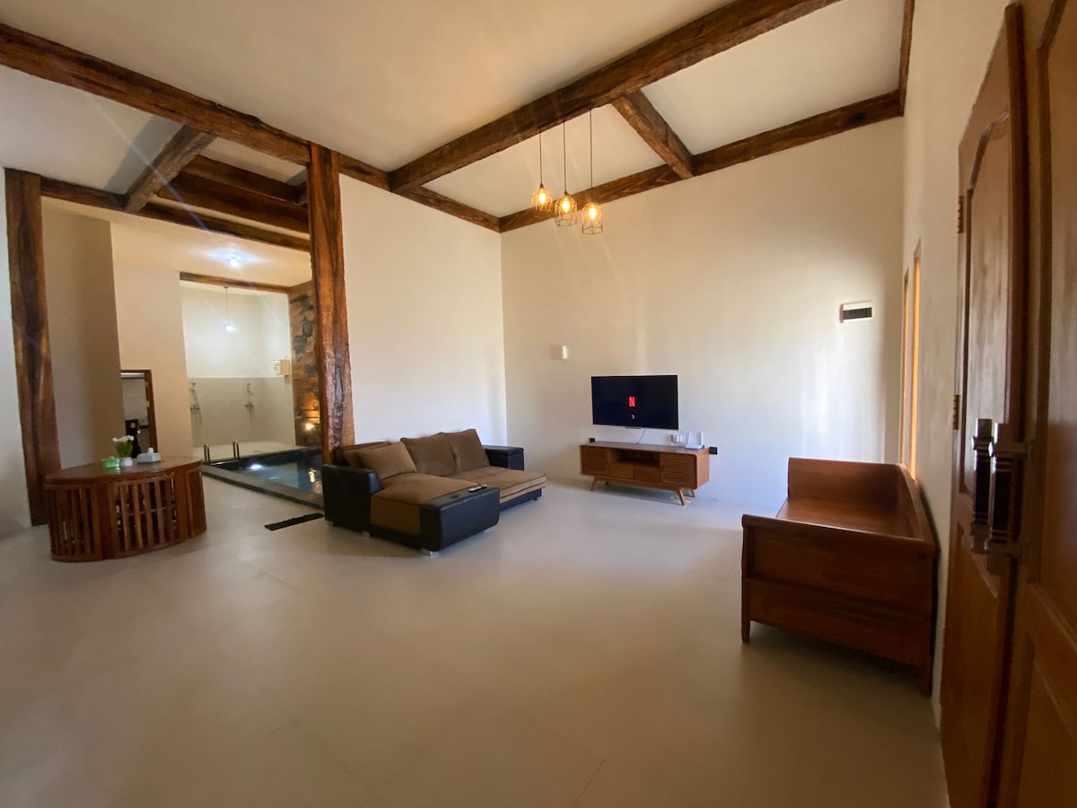 - PERFEKT FÜR FAMILIEN- und FREUNDESZUSAMMENKÜNFTE ^^. - Privater Pool. - 3 SCHLAFZIMMER + 1 GEMEINSCHAFTSBEREICH (max. 10-12 Personen). - KOSTENLOSES WLAN, Netflix, YouTube Premium (werbefrei :) - 10 - 15 Minuten zum Jawa Timur Park 1,2,3, Museum Angkut, Alun2 Batu - 7 Minuten zum Songgoriti-Markt - 15 Minuten Fahrt nach Paralayang Batu - Geräumige Garage zum Parken, bis zu 3 - 4 Autos. (sogar ein Mid-Bus, Minibus, Hi-Ace oder Elf können bequem im Bereich parken) - voll ausgestattete Küchenzeile - warme und kalte Dusche