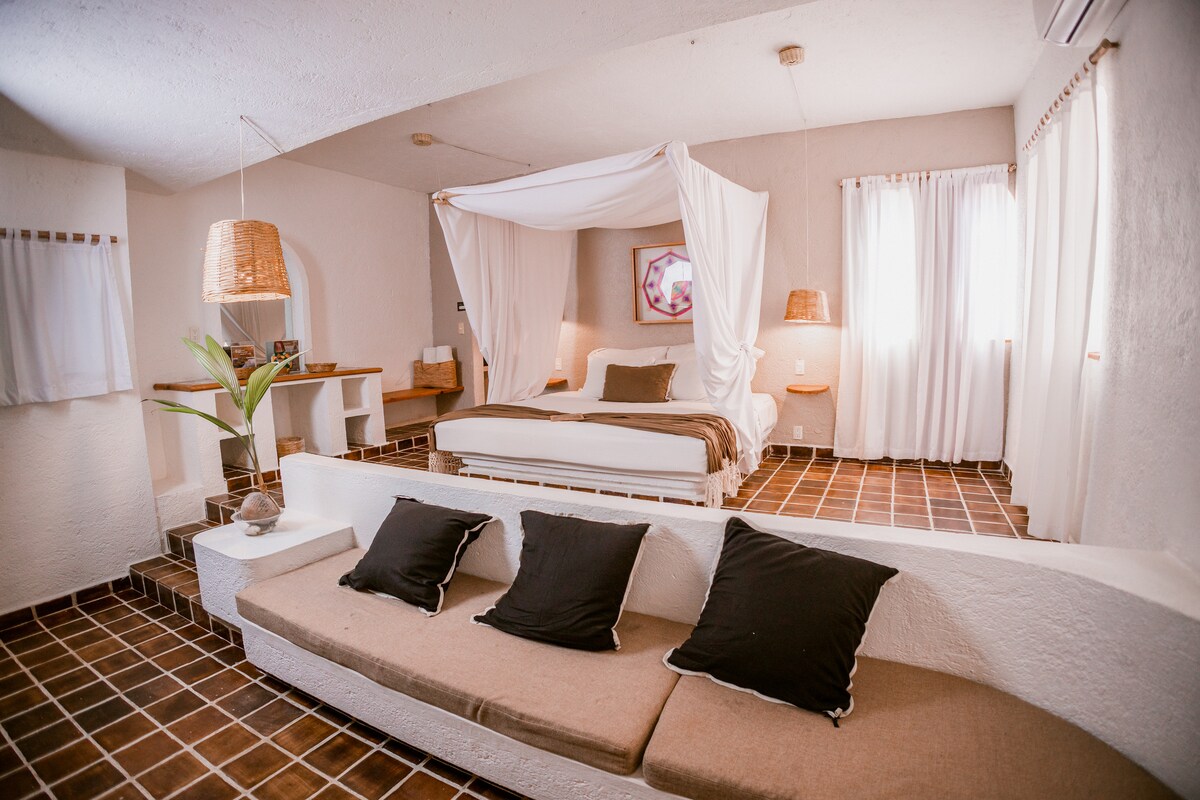 Ein Boutique-Spa-Rückzugsort über der Küste im ruhigen Troncones. Unsere Suiten sind für tiefe Erholung konzipiert, mit natürlichen Texturen, täglichen Ritualen und ruhigem Berg- oder Gartenblick. Genieße Massagen unter freiem Himmel, Hydrotherapie, Temazcal-Zeremonien und lokale Mahlzeiten in einer wunderschönen Umgebung. Spaziere zum Strand, erkunde das Dorfleben oder tue gar nichts. Dies ist mehr als ein Aufenthalt, es ist eine Rückkehr zu sich selbst, in Wärme, Vogelgesang und sternenbeleuchteter Stille.