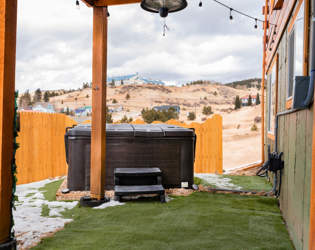 Die Oso Lucky Lodge bietet ein einzigartiges und entspannendes Berghütten-Erlebnis in Cripple Creek, Colorado. Nur 1 Minute von den Casinos entfernt, ist es der perfekte Kurzurlaub mit ruhiger Bergumgebung und nahe gelegenen Wanderwegen. Entspanne dich mit Bergblick vom Whirlpool oder vom privaten Balkon aus und genieße Kingsize-Betten von Sleep Number, 3 Kamine, 4 Smart-TVs, eine Dartscheibe, ein Shuffleboard, eine Zimmerbar, eine große Küche und vieles mehr. Erlebe Komfort und unvergessliche Ausblicke in einer der besten Cripple Creek Lodges!