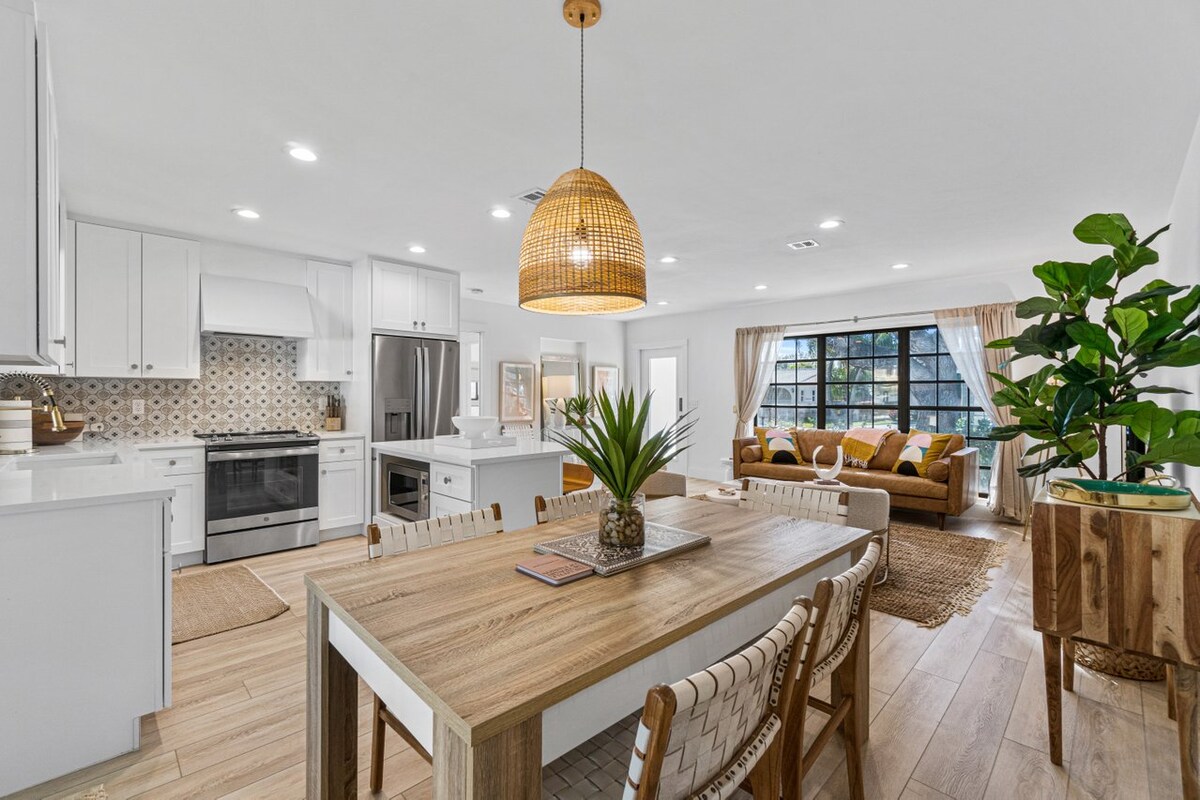 Erlebe modernes Boho-Wohnen und luxuriöse Annehmlichkeiten mit diesem neu renovierten Bungalow aus den 1950er Jahren. Mit dem Fahrrad erreichst du den Strand und die pulsierende Innenstadt von Delray. Alles von PopStroke by Tiger Woods, Coco Market und Morikami Gardens bis hin zum aufstrebenden Pineapple Grove Arts District und dem Atlantic Ave Strip ist nur wenige Minuten entfernt. Haustiere sind auch willkommen und kostenlose Parkplätze stehen zur Verfügung. Wir bieten nach Möglichkeit frühe und späte Check-ins an. Buche jetzt und gönne dir ein lokales Erlebnis.