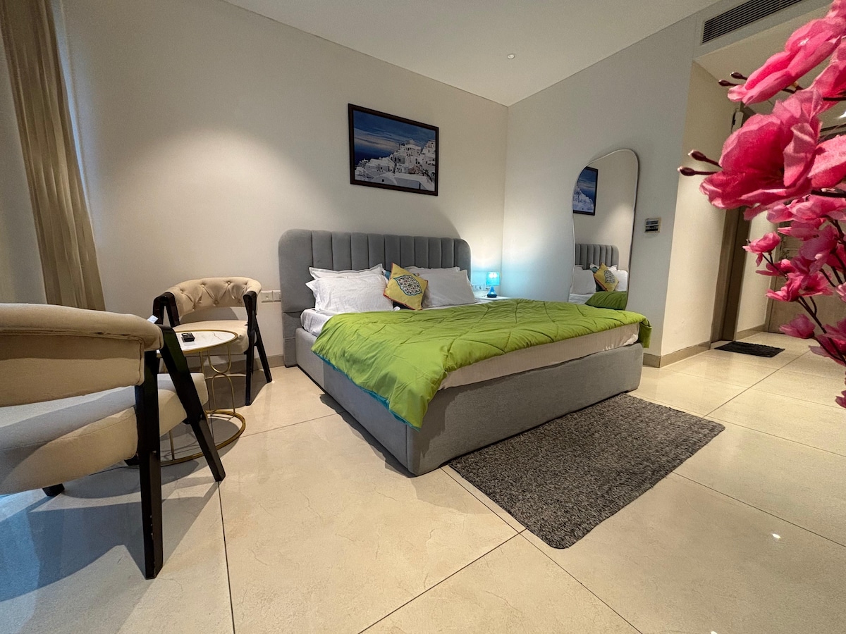 Hab Spaß mit der ganzen Familie in dieser stilvollen Unterkunft. Diese Unterkunft bietet alles, was du für einen luxuriösen Aufenthalt benötigst. Sie verfügt über alle Annehmlichkeiten und bietet volle Sicherheit und Privatsphäre. Entspanne dich und genieße die Zeit mit deinen Lieben im Ultra Luxury Studio. Erlebe den Luxus einer 5-Sterne-Unterkunft mit 5-Sterne-Annehmlichkeiten. Dieser Ort ist privat und unabhängig und wird mit niemandem geteilt. Genieße das Essen im Freien auf dem schönen Balkon mit einem schönen Blick auf die Stadt. Sehr privat ohne laute Nachbarn.