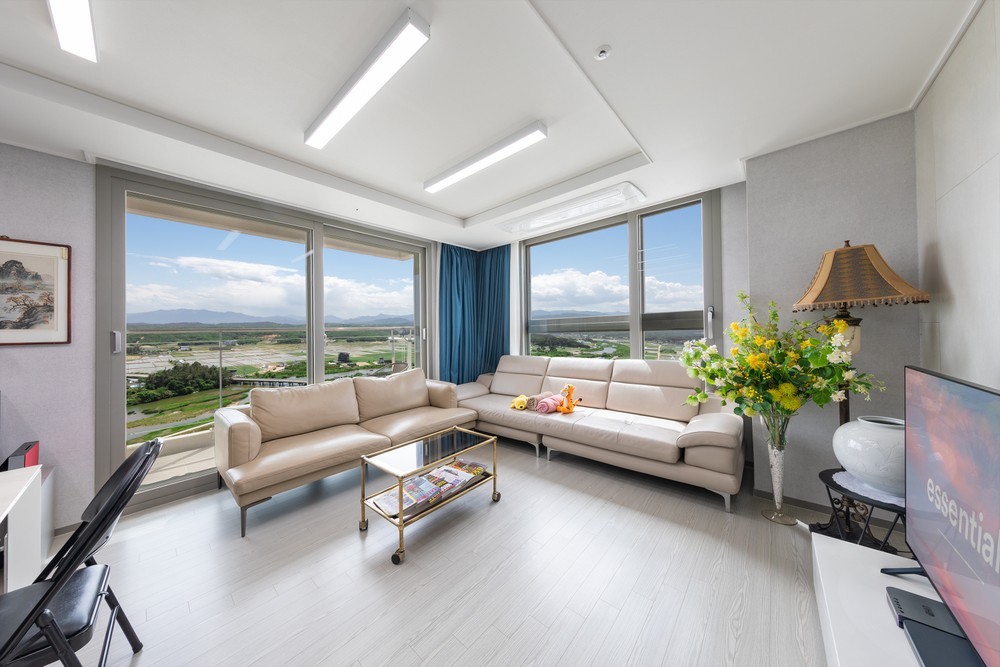 # Naksan Beach # Sweet Family Zweibettzimmer + Wohnzimmer # 18. Stock # Hochhaus mit Meerblick # Seoraksan Ulsan Felsenblick _ Zimmer # Eckzimmer