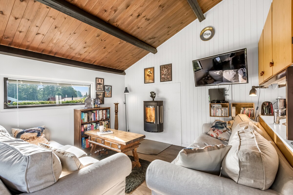 Genießen Sie das einfache Leben in einem schönen und gemütlichen Holzhaus im alten Teil von Flovt Strand, 350 Meter vom besten Badestrand der Ostküste entfernt! Das Haus verfügt über ein gemütliches Wohnzimmer mit Kamin und einen schönen Essbereich in Verbindung mit einer offenen Küche. Draußen werden Sie von einem idyllischen, geschlossenen Garten mit sonniger Holzterrasse und Außenkamin begrüßt. Nach einem schönen Spaziergang am Strand können Sie sich vor einem gemütlichen Kamin niederlassen. Im üppigen Garten befindet sich ein 10 m2 großes Orangerie.