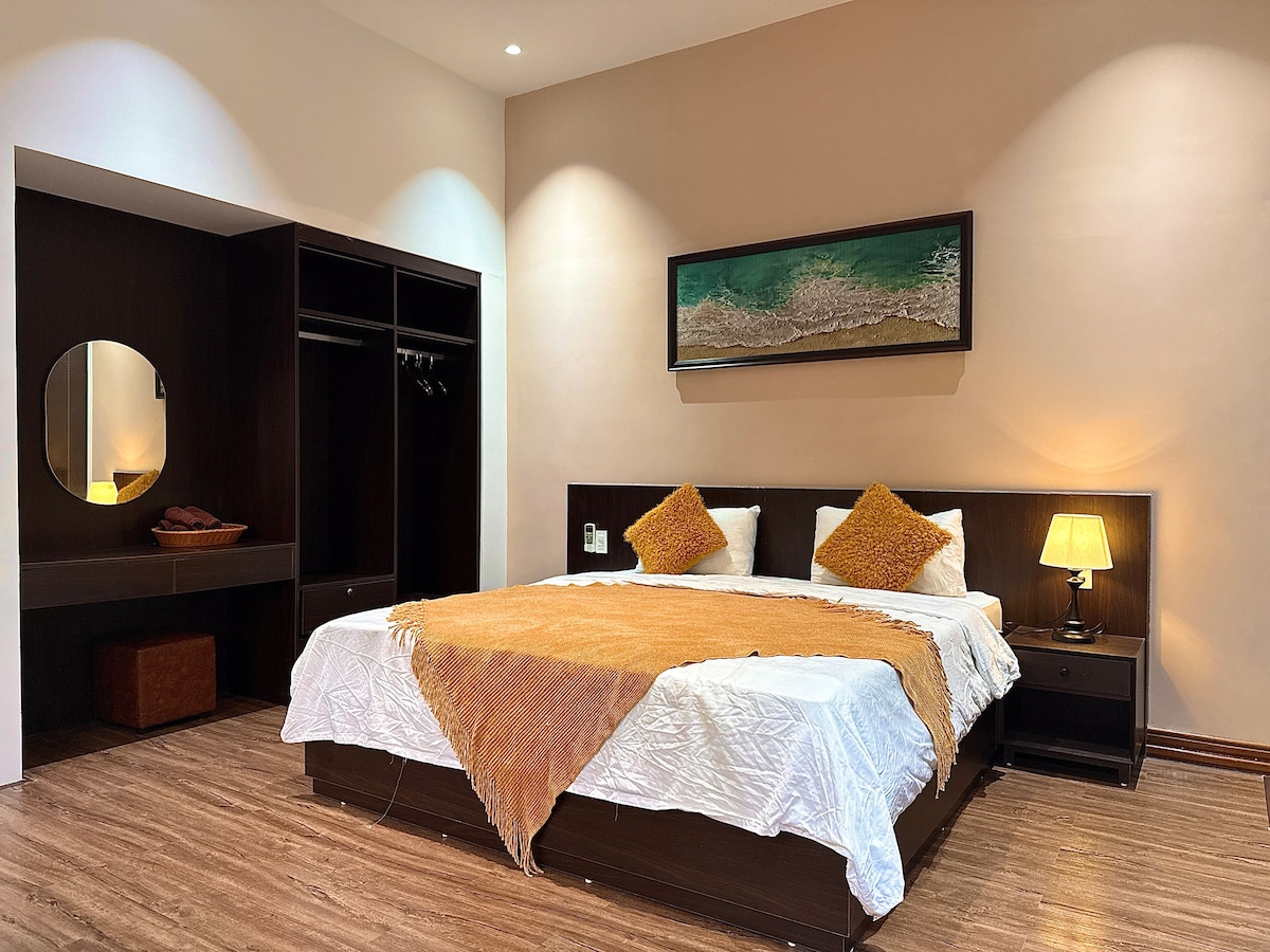 Es ist eine 55 m² große Wohnung mit 2 Schlafzimmern und 1 Badezimmer im Japandi-Stil - wo Minimalismus auf Eleganz trifft. Die Unterkunft ist komplett mit modernen Möbeln für einen angenehmen Aufenthalt ausgestattet. Im 1. Stock (2. in den USA) des Astro House, einem von Santorini inspirierten Gebäude voller Grün in einer ruhigen Gegend. Egal, ob du dich sonnen oder die Meeresbrise genießen möchtest, unser Minipool auf dem Dach und der Strand My Khe (nur einen kurzen Spaziergang entfernt) warten darauf, von dir erkundet zu werden.