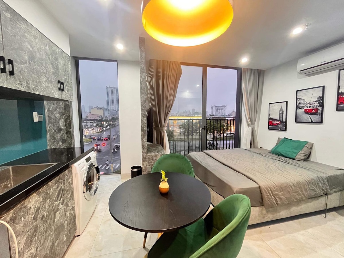 Feuerwerk-Ansicht | Gemütliches Studio in der Nähe der Thuan An Brücke – Da Nang Beobachte das Feuerwerk von deinem eigenen Balkon aus! Nur wenige Schritte von der Thuan-An-Brücke entfernt bietet dieses Studio einen der besten Orte, um die Stadtlandschaft von Nangs und das Feuerwerk während der Festivals zu genießen. Queensize-Bett | Klimaanlage | Küchenzeile | Waschmaschine | Schnelles WLAN Top Standort: – 3 Minuten zur Thuan An Brücke – Kurze Fahrt zum Strand My Khe und zu lokalen Straßen mit Essen Perfekt für Paare, Reisende für Komfort, Aussicht und Bequemlichkeit.