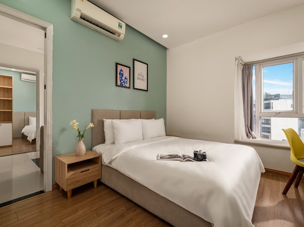 Das Hotel☆ liegt im Herzen von Da Nang, nur 4 Minuten vom Han River mit vielen Restaurants, Cafés, Geschäften und Bars entfernt. ☆ Neue und hochwertige Einrichtungen: Fernseher, Kühlschrank, Klimaanlage, Bett, Waschmaschine, Esstisch, Elektroherd, Mikrowelle usw. Die ☆ Wohnung verfügt über eine voll ausgestattete Küche, einen Balkon und einen Pool auf der Dachterrasse. ☆ WLAN, Reinigung und Zugang zum Pool auf der Dachterrasse sind kostenlos, mit Ausnahme der Stromgebühr (4.000 VND/kW) und der Wassergebühr von 100.000 VND/Monat (für Aufenthalte von 14 Tagen und mehr).