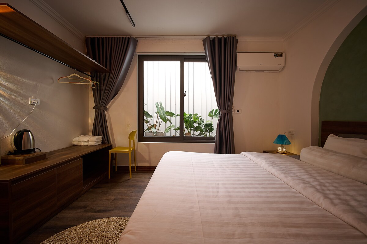 Genieße ein stilvolles Erlebnis in diesem zentral gelegenen Ort. Wenn du eine kurze - romantische Reise mit deinem Liebsten möchtest, bleib einen Tag! Die Wabi-Sabi-Architektur und der warme winzige Raum sorgen dafür, dass du die Liebe in der Luft spürst. Sky View Privatzimmer im Zentrum von Ninh Binh gelegen, nur 500 Meter von der Altstadt von Hoa Lu entfernt, 2 Kilometer von Trang An Heritage, Bai Dinh Pagode entfernt. Du findest viele berühmte Restaurants in der Nähe. Du kannst deinen Urlaub genießen, ohne zu viel Zeit zu verbringen, um eine Unterkunft zu finden!