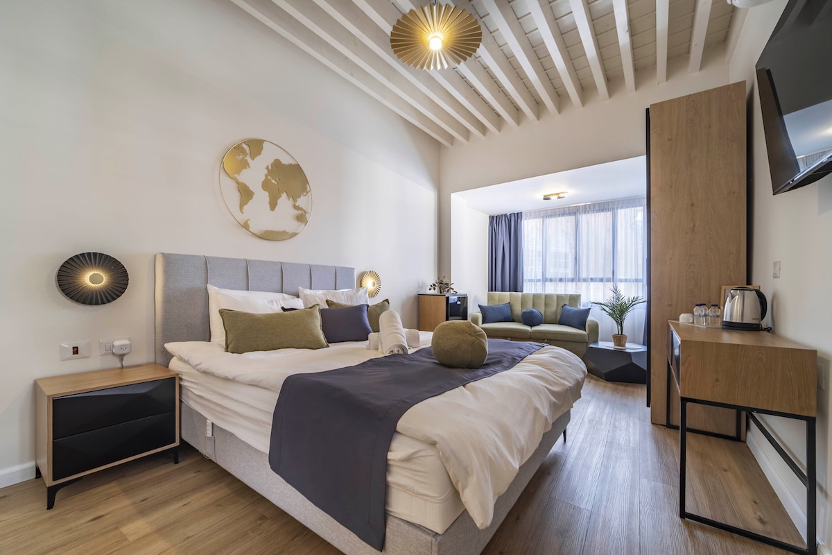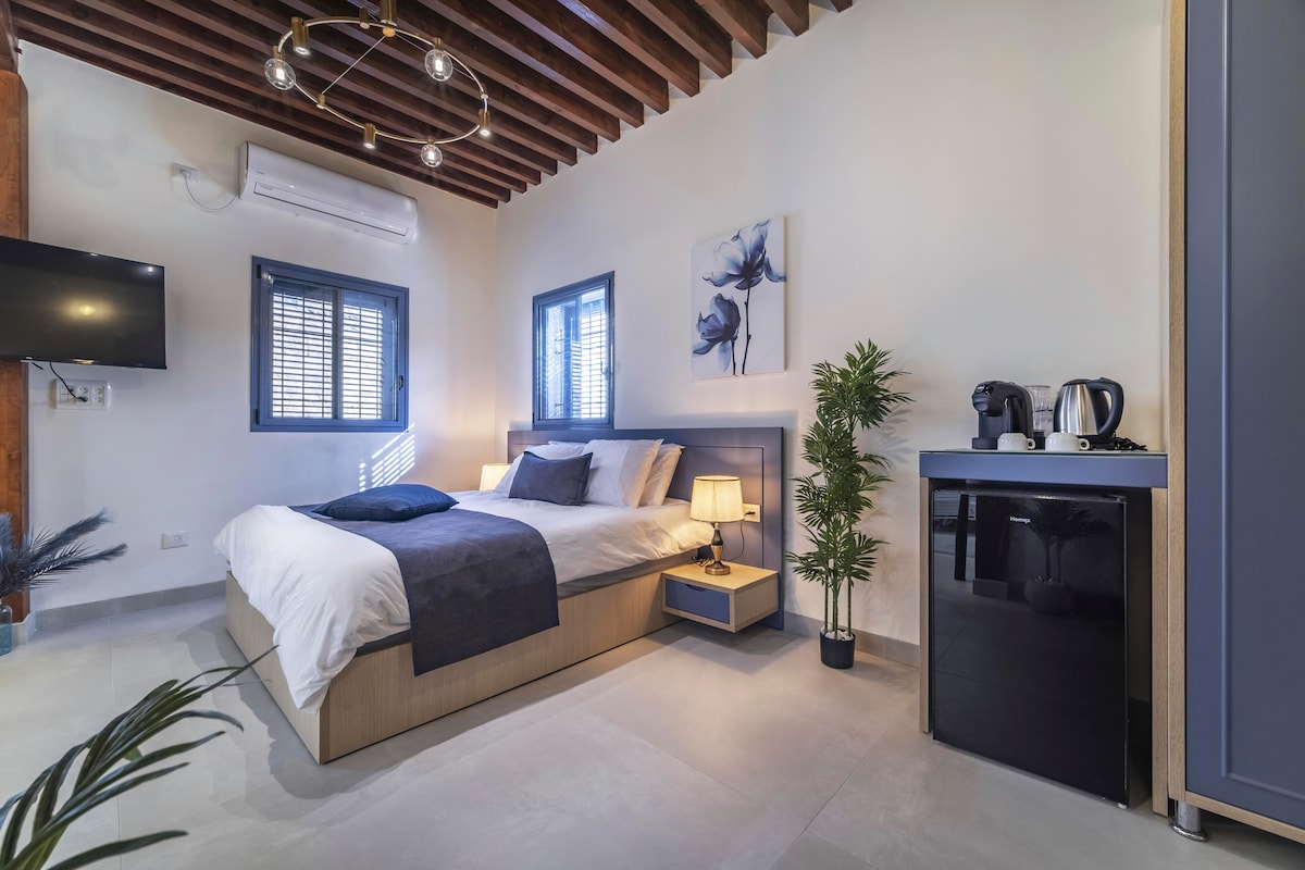 Geräumiges und helles Studio, von Grund auf renoviert, mit einem privaten Eingang und Garten für deine exklusive Nutzung - auf einer separaten Ebene, schattig unter Zitrusbäumen (Abstieg zur Einheit über Treppen) In der Unterkunft genießt du eine voll ausgestattete Küchenzeile (Kühlschrank, Mikrowelle, Elektroherd, Wasserkocher, Kaffeemaschine, Besteck und Kochutensilien), eine geräumige Kücheninsel, einen Sitzbereich mit einem 360-Grad-Smart-TV, ein komfortables Doppelbett und ein eigenes Bad. Die Lage ist großartig – ca. 5 Gehminuten von einem charmanten Café, einem rund um die Uhr geöffneten Supermarkt und öffentlichen Verkehrsmitteln entfernt. Das Carmel Center ist nur 10–12 Gehminuten entfernt. Geeignet für diejenigen, die Ruhe, Grün und Komfort im Herzen der Stadt suchen. Kostenloses Parken auf der Straße