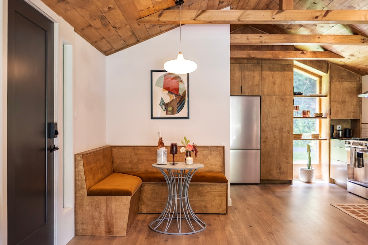 In der Nähe von Belleayre und Plattekille zum Skifahren im Winter. Geöffnet für zwei Nächte von Januar bis Mai. Neu 2026: Küchenmaschine. Das Cupcake Cottage wurde komplett renoviert: Das gleiche Licht, der Charme und die Aussicht bleiben, aber im Inneren gibt es eine neue Küche, einen Bodenbelag und eine Heizung. Und draußen eine neue Terrasse und Veranda, Fenster, Außenverkleidung, Dach und Dachgauben. Das Haus ist eine Scheune aus dem Jahr 1838 mit alten Balken und Dachsparren und modernen Oberflächen aus Hemlock, Roteiche und westlicher roter Zeder.
