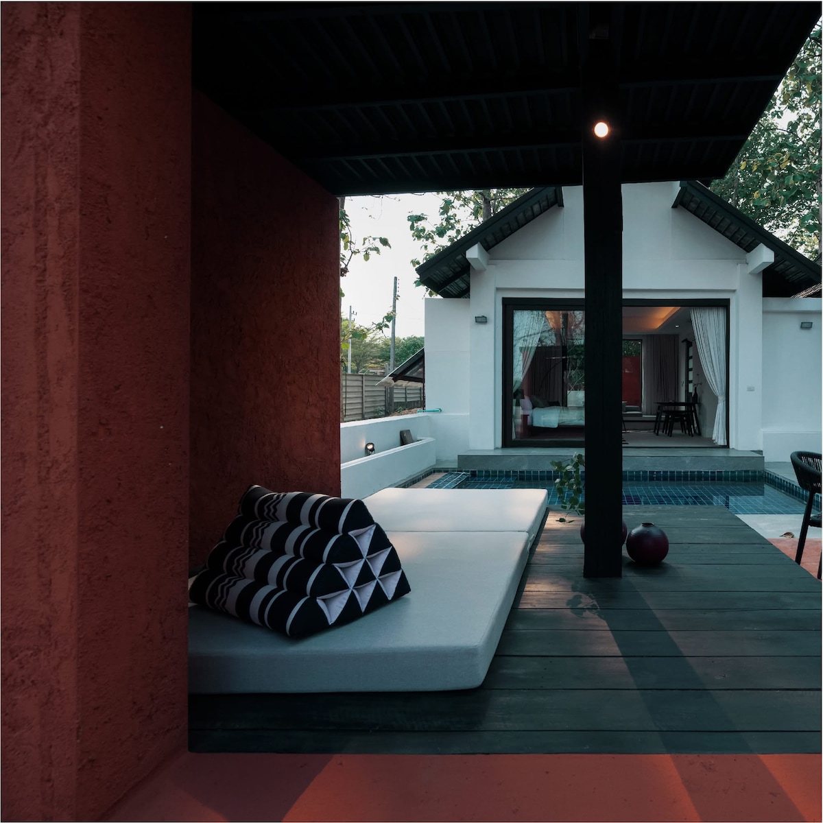 Red Riding Wood CNX: eine familienfreundliche Poolvilla Entfliehe dem Red Riding Wood CNX, einer Poolvilla in den üppigen Teakholzwäldern von Hang Dong, Chiang Mai. Perfekt für Familien, verfügt es über eine geräumige Villa mit 1 Schlafzimmer, 1 Badezimmer mit einem privaten Pool und einen Waldspielplatz für Kinder. Genieße einen atemberaubenden Blick auf den Pool und die legendäre rote Architektur. Nur 20 Minuten vom Flughafen CNX, 8 Minuten von Chiang Mai Night Safari und 25 Minuten von der Nimman Road entfernt.
