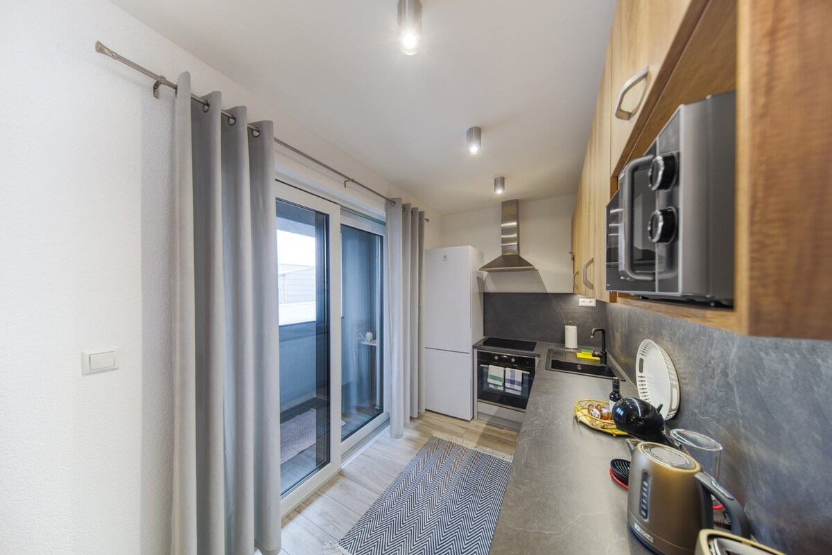 Moderní apartmán v centru Spišské Nové Vsi s výhledem na město a Tatry, ideální pro až 4 hostí. Nabízí 2 ložnice, 2 koupelny, obývací pokoj s kuchyní a rozkládacím gaučem. K dispozici je malý balkon a sdílená terasa s krásným výhledem na Tatry. Naproti apartmánu najdete Billa a Coop, skvělé pro rychlé nákupy. Na náměstí, jen 5 minut pěšky, vás čeká kostelní věž a spousta restaurací a kaváren. Parkování je zajištěno na soukromém parkovišti s kamerovým systémem a závorou.