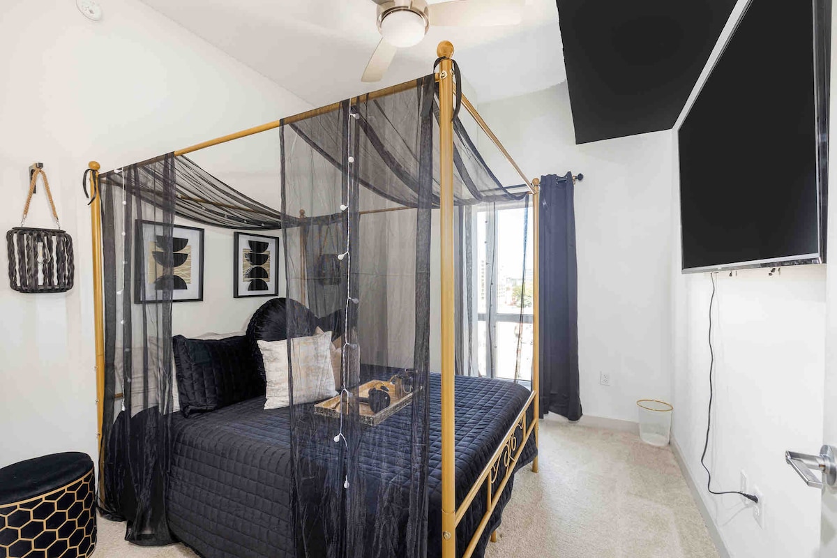 Zu Fuß zum Broadway! Kingsize-Bett, Balkon, Fitnessraum, kostenloser Parkplatz