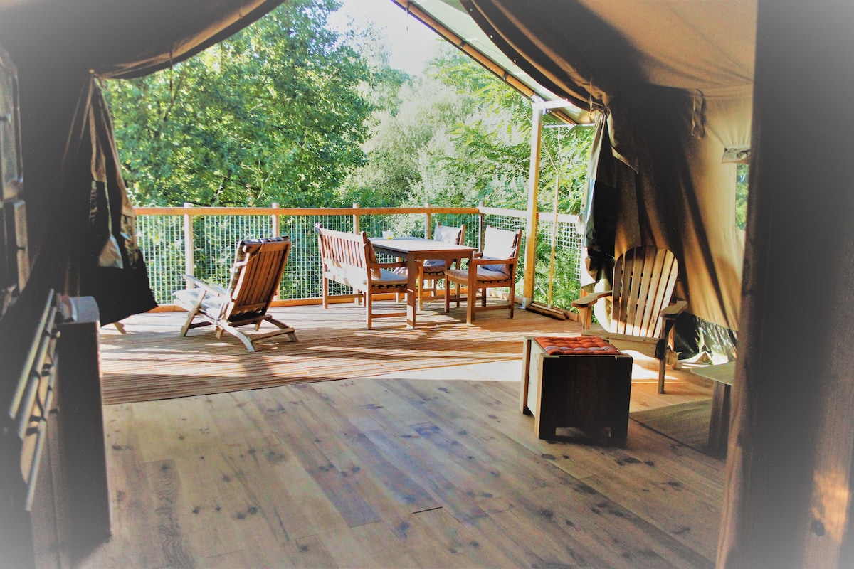 Genießen Sie zeitlose Momente in unserem Komfortzelt auf einem Naturcampingplatz am Ufer des Viam-Sees. Ruhig, Tapetenwechsel garantiert! Ein Zelt mit zwei Zimmern, eines davon mit einer Ultra-Komfort-Matratze ausgestattet. Bettwäsche wird gestellt, Sie müssen nur noch Ihren Koffer oder Ihre Wandertasche mitbringen. Der Sanitärblock des Campingplatzes steht zur Verfügung. Sie haben direkten Zugang zum Strand und zum Baden.
