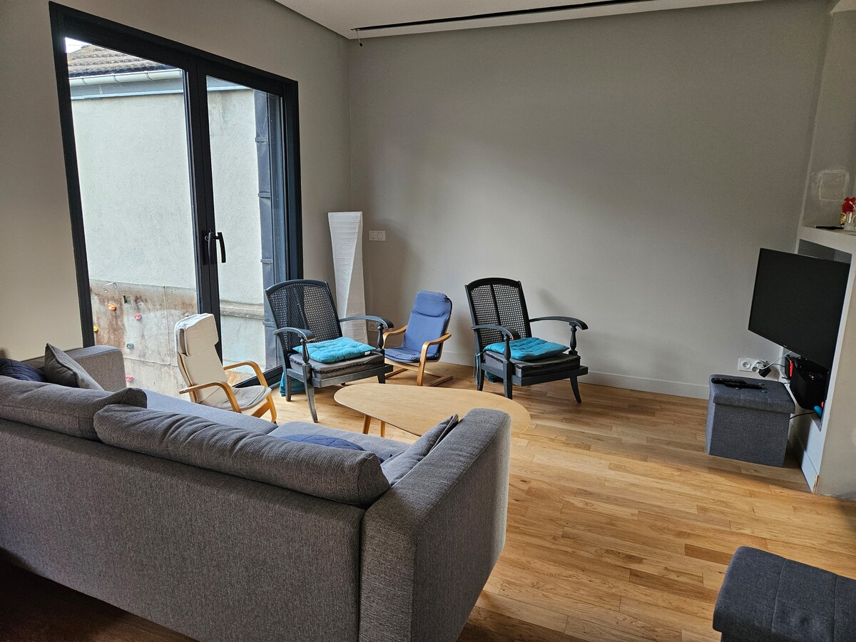 Willkommen in deinem gemütlichen Zuhause in der Nähe von Paris! Nur wenige Minuten vom Bahnhof entfernt, dann eine kurze 15-minütige Zugfahrt ins Zentrum von Paris. Dieses brandneue Gästehaus in Sartrouville bietet Platz, Komfort und Ruhe. – Großer privater Garten (600 m²) – Grillen & Essen im Freien – Ruhig mit Doppelverglasung & Verdunkelungsrollläden – Schnelles WLAN & Heizung – Voll ausgestattete Küche – gratis Parkplätze – Haustierfreundlich Perfekt für Paare, Familien oder auch Alleinreisende. 📍 Der Bahnhof ist 12 Gehminuten oder 4 Minuten mit dem Bus entfernt.
