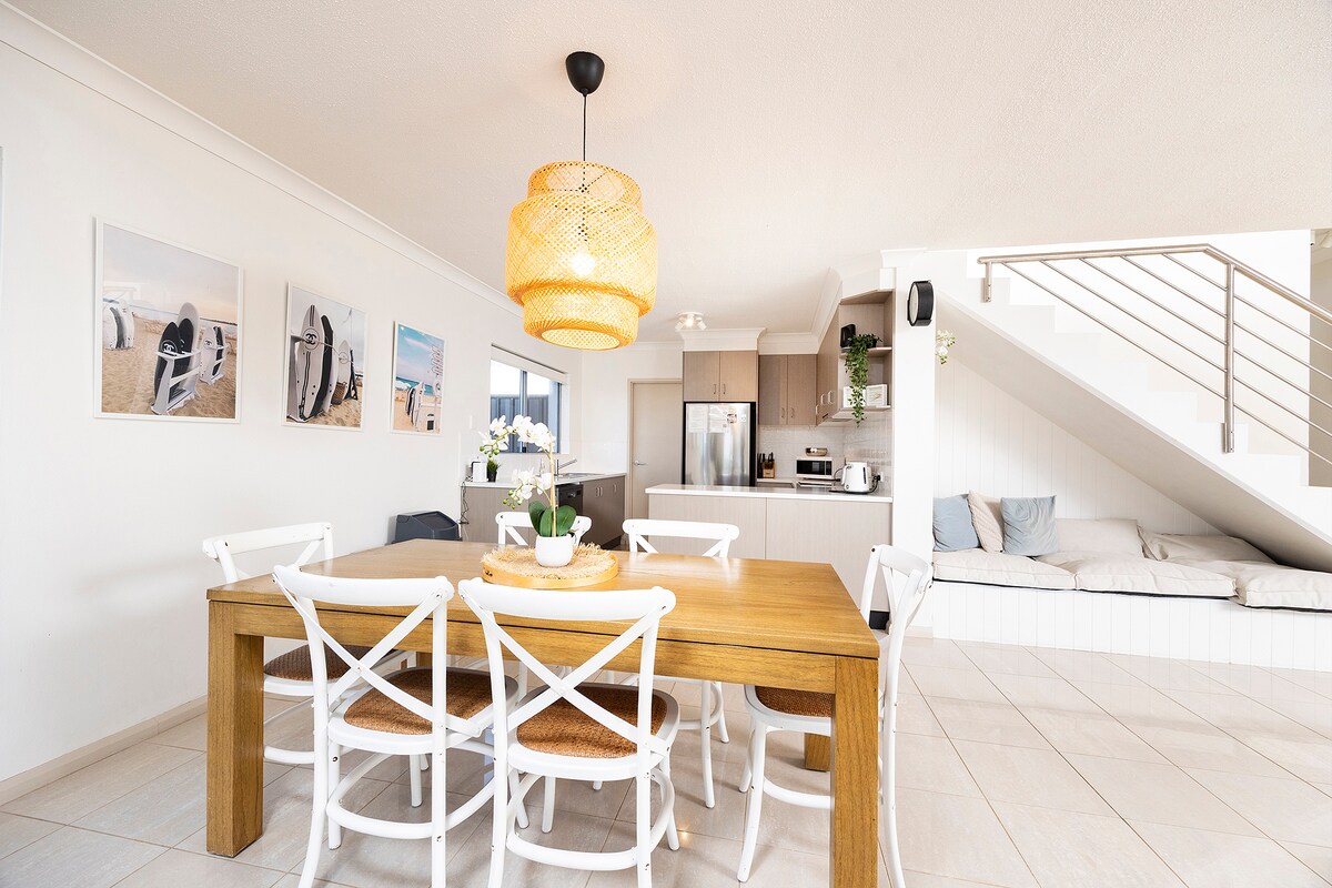 Nur wenige Schritte vom funkelnden Blueys Beach entfernt bietet dieser entspannte Küstenurlaub 3 geräumige Schlafzimmer, 2 Wohnbereiche, eine Arbeitsecke und eine voll ausgestattete Küche. Genieße Grillabende bei Sonnenuntergang auf dem Balkon auf der obersten Etage. Da der Strand hundefreundlich ist, kann jeder lange Spaziergänge und Meerblick genießen. Ein perfekter Rückzugsort zum Entspannen, Erkunden der Küste und Schaffen von Erinnerungen. *Bitte beachte, dass es auf der Rückseite des Hauses zu Bauarbeiten kommen kann, die gelegentlich zu Lärm führen können.*