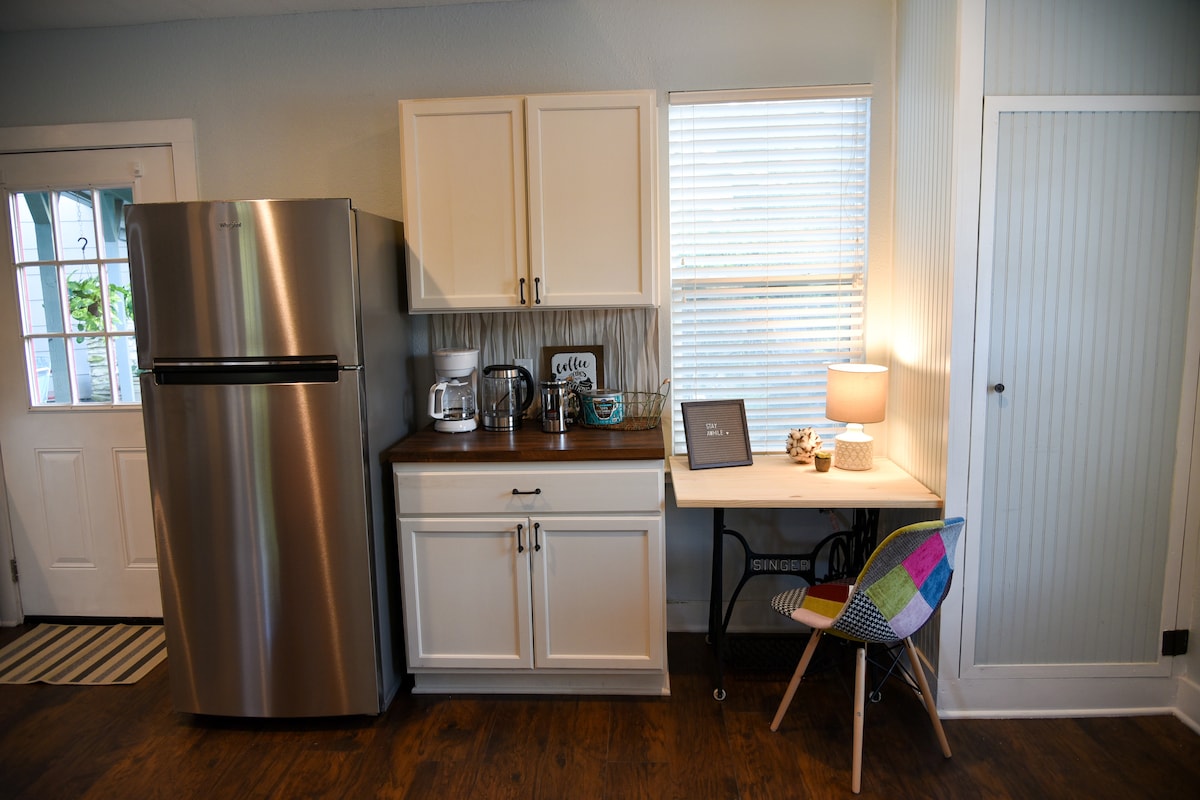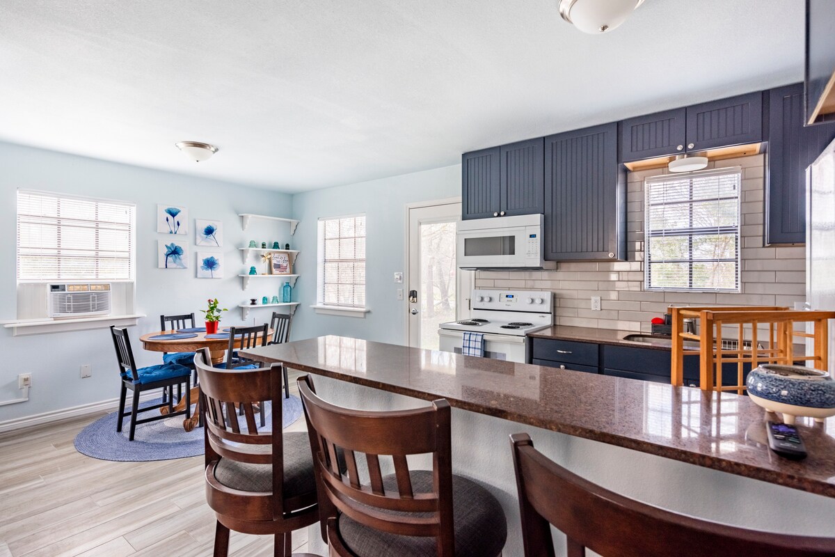 La Casita ist sowohl für die Arbeit als auch für die Entspannung ideal. Es ist ein moderner, privater Rückzugsort mit einer voll ausgestatteten Küche, einer Waschmaschine und einem Trockner in der Unterkunft sowie schnellem WLAN, was perfekt für Homeoffice oder längere Aufenthalte ist. Genieße deinen eigenen, eingezäunten Garten, der ideal ist, um zur Ruhe zu kommen oder bis zu zwei Haustiere bequem herumlaufen zu lassen. Die Unterkunft ist günstig gelegen und bietet einfachen Zugang zur I-35. Restaurants, Einkaufsmöglichkeiten und lokale Sehenswürdigkeiten sind nur wenige Minuten entfernt. Ein früher Check-in und optionale Zusatzleistungen sind verfügbar, um deinen Aufenthalt noch angenehmer zu gestalten.