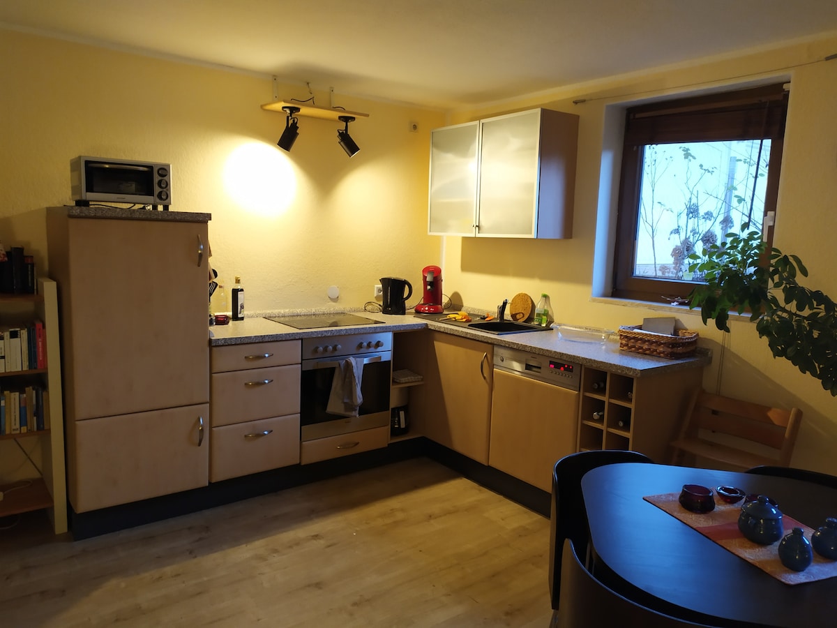 Die gemütliche Ferienwohnung eignet sich auch für evt. längere Urlaubsaufenthalte. Eine Waschmaschine sowie ein Trockenraum befinden sich im Haus. Zur Ferienwohnung gehört ein Parkplatz und ein Fahradraum. In unmittelbarer Nähe befindet sich auch ein gutbürgerliches Restaurant mit sächsischer Küche ("Hommels Gasthaus"). Einfach reinkommen und wohlfühlen" . Es gibt einen Wasserkocher und natürlich eine Kaffeemaschine...Kaffee und Tee ist auch da...Sonderwünsche werden gern erfüllt