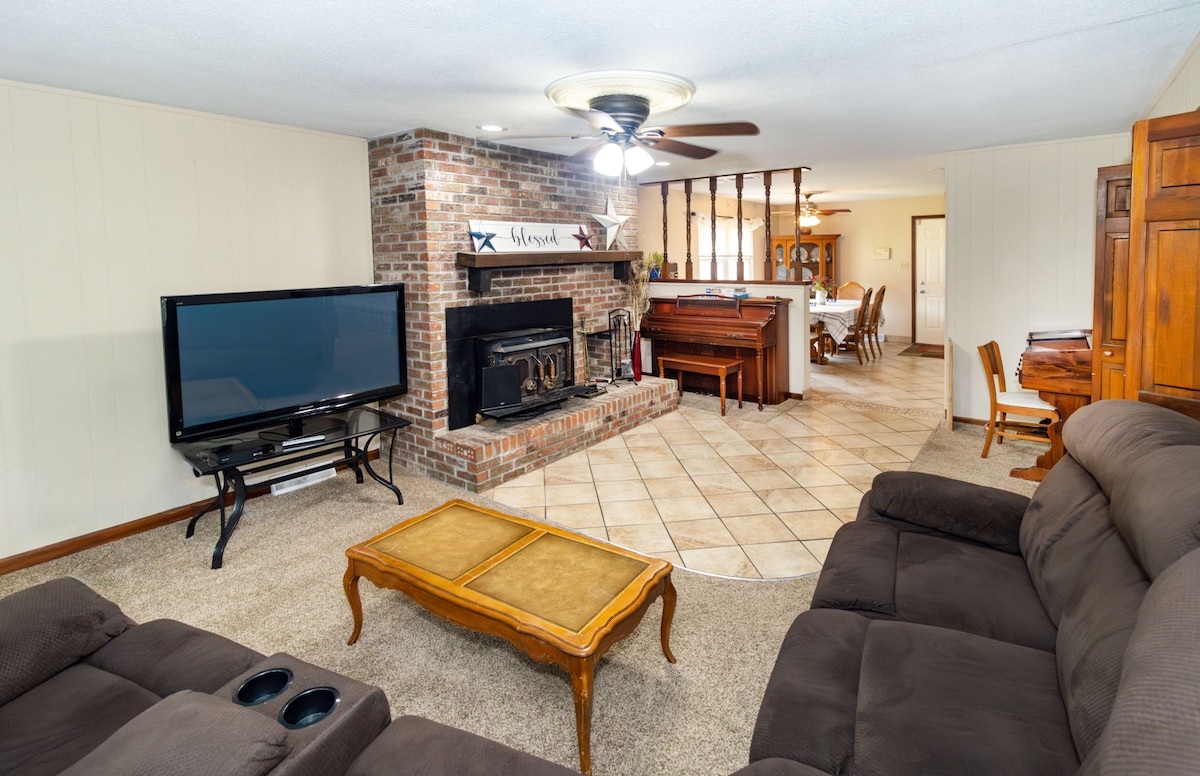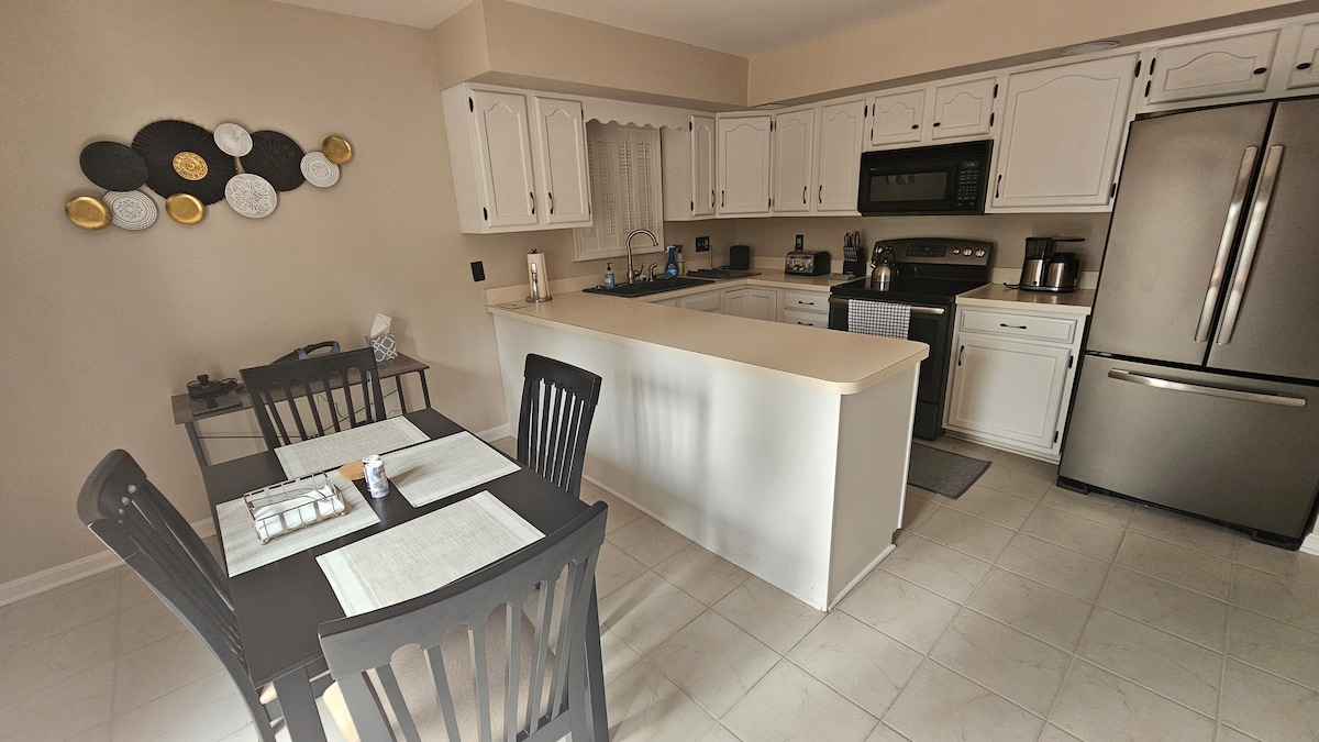 Genieße deinen Aufenthalt in der Gegend von Newburgh/Evansville mit dieser perfekt gelegenen Unterkunft. Es befinden sich 4 Schlafzimmer (5 Betten) und 2 Badezimmer. Wir bieten eine voll ausgestattete Küche, 3 Essbereiche und ein gemütliches Wohn- und Familienzimmer mit einem gemauerten Kamin. Es gibt genügend Platz im Hof, also wenn du Spiele mitbringen möchtest, kannst du das gerne tun! {2100 m ² Keine Treppe!!!} Eine Etage! Du bist nur eine kurze Autofahrt von Evansvilles Ostseite und eine noch schnellere Fahrt zum bezaubernden Spaziergang am Fluss in Newburgh, mit Einkaufsmöglichkeiten und Restaurants. Gas Grill