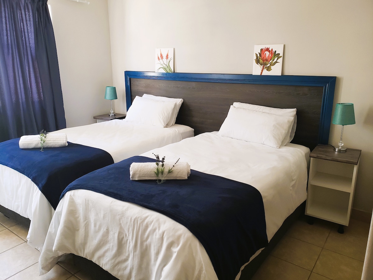 Ordentliche und geräumige und geräumige 2 Schlafzimmer, komplettes Badezimmer, offenes Wohnzimmer und Küchenwohnung. Grill und Terrasse im Freien mit einer fantastischen Aussicht auf das Meer und die Wüste. Das Hotel liegt im ersten Stock im CBD. Es ist eine winzige Urlaubsstadt mit einem großen Herzen. Dein Zwischenstopp auf dem Weg zu und von Damaraland und Etosha. Perfekter Aufenthalt über der Basis für tägliche Ausflüge in der Nähe. KEINE GARAGE Wäsche auf Anfrage verfügbar. Tägliche Reinigung nach Absprache. Wir können 2 zusätzliche Personen unterbringen.