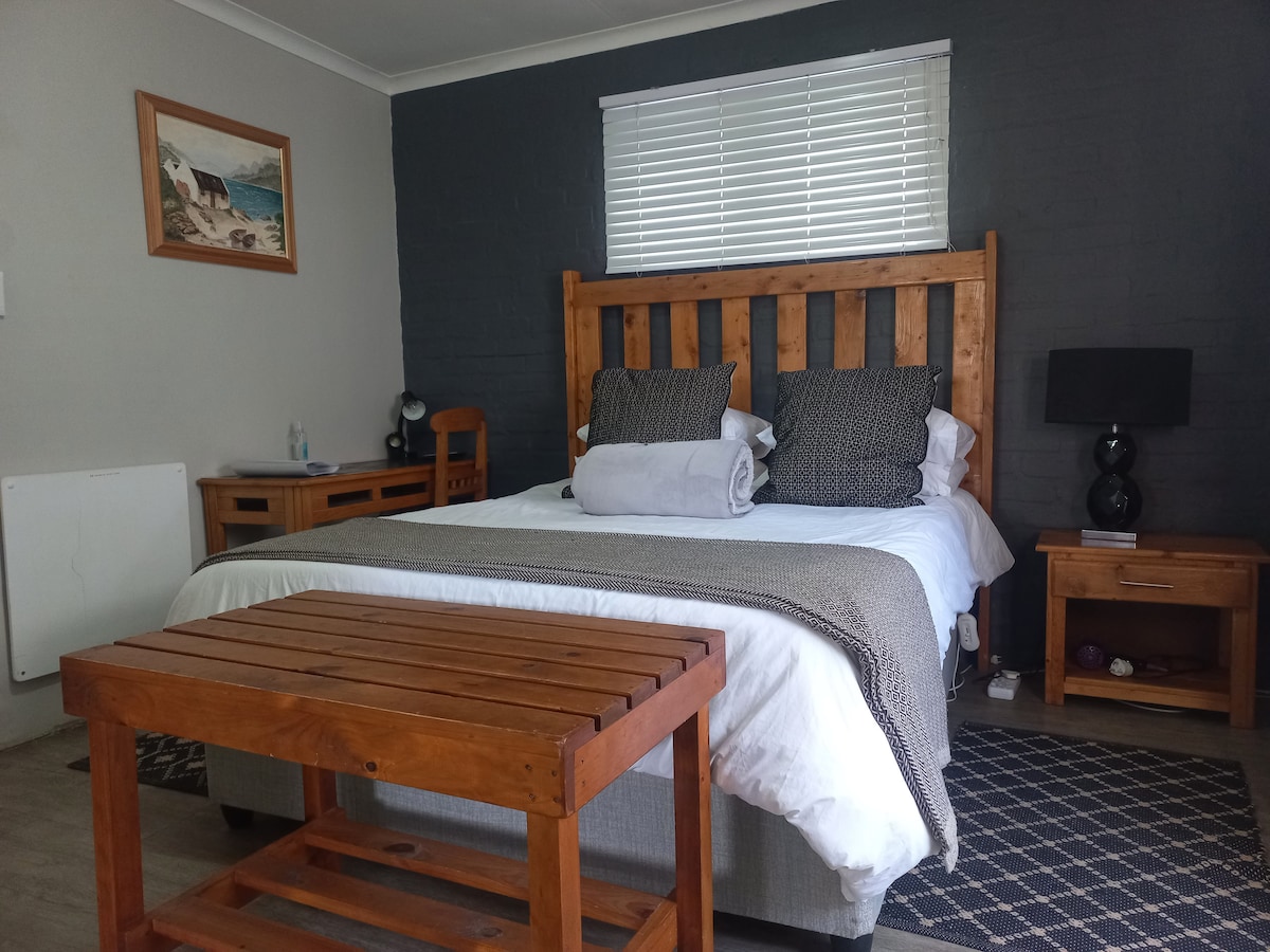 Einliegerwohnung mit schlichtem Design und übersichtlichem Stil. Private Umgebung mit separatem Eingang, Glasfaser-Internet, Terrasse, Smart-TV (mit Netflix) und verbundener Sicherheit in einer ruhigen Gegend. Nur 3-5 Fahrminuten vom Strand und den Sehenswürdigkeiten von Onrus und 10 Autominuten von Hermanus Central entfernt. Perfekt für Paare oder Alleinreisende, die einen ruhigen und angenehmen Aufenthalt suchen. Haustierfreundlich - bitte stelle sicher, dass du sowohl drinnen als auch draußen hinter ihnen aufräumst und die Einrichtung mit Sorgfalt behandelst.