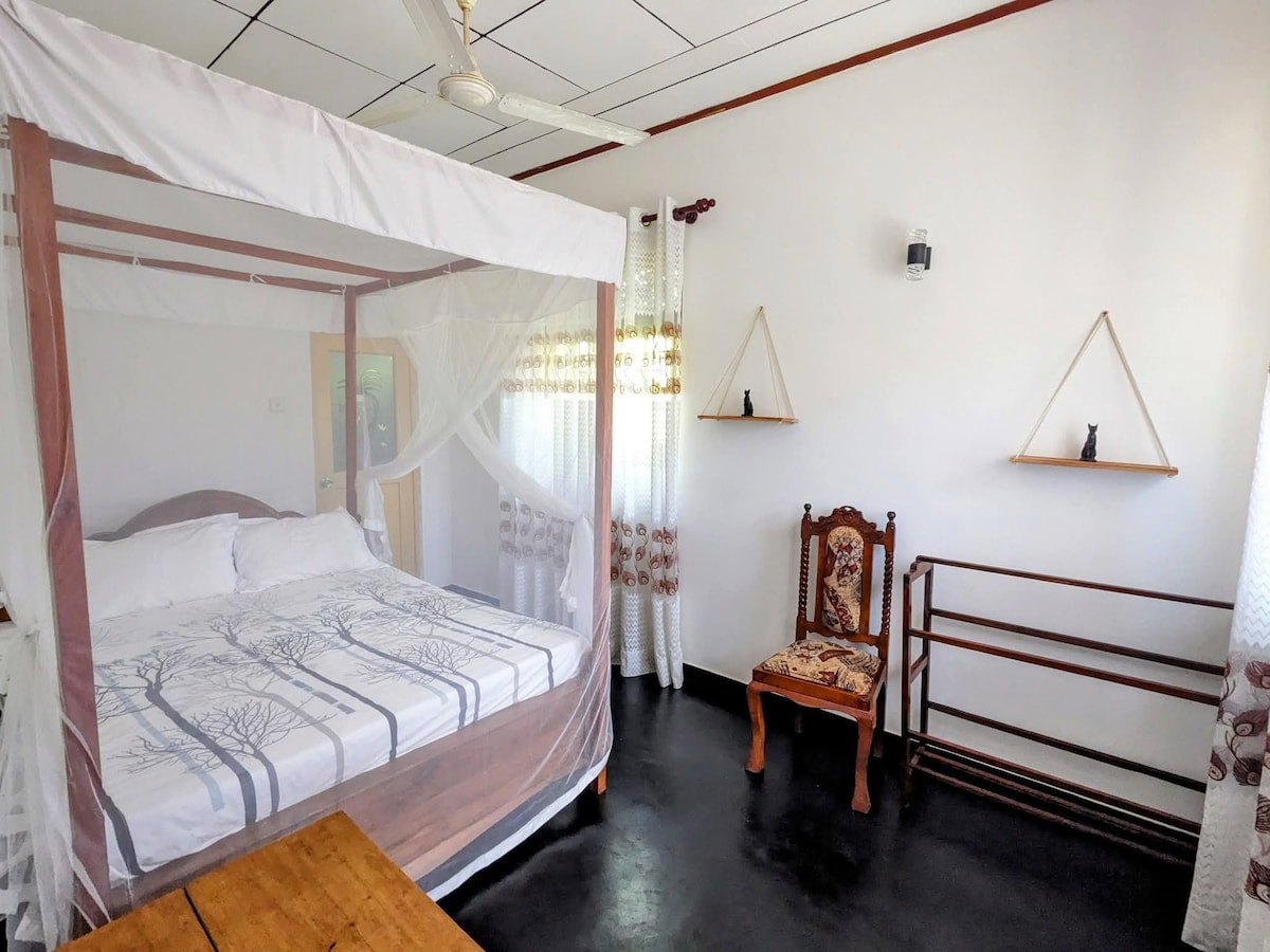 🌴 Entspannung in der Nähe des Hafens von Mirissa 🌴 Unsere schöne Wohnung mit Betonböden und handgefertigten Holzmöbeln befindet sich in einer ruhigen Gegend, aber in der Nähe des Strandes, der Restaurants und allem anderen, was Mirissa zu bieten hat. Perfekt für Paare, kleine Familien oder Freunde, die sich entspannen, die Sonne genießen und die Gegend entdecken möchten. Die Reinigung ist inbegriffen, wenn du möchtest – komm einfach und genieße es!