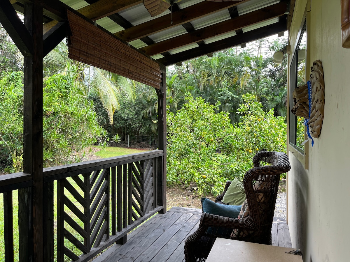 Wir sind Gastgeber einer ruhigen hawaiianischen Oase, weniger als 15 Minuten von Hilo, dem Flughafen Hilo und 15 Minuten von der erdigen Hippie-Stadt Pahoa entfernt. Unsere Ohana hat eine gute Anbindung an die Hauptstraße, aber weit genug entfernt, um in völliger Stille und ohne Lichtverschmutzung zu sein. Das Studio ist vom Haupthaus getrennt und verfügt über eine Küchenzeile, ein komplettes Badezimmer mit Badewanne und eine zentrale Klimaanlage. Wenn du auf der Suche nach tollen Stränden, Wasserfällen und Wanderungen durch den Regenwald und botanische Gärten bist, brauchst du nicht lange weitersuchen.