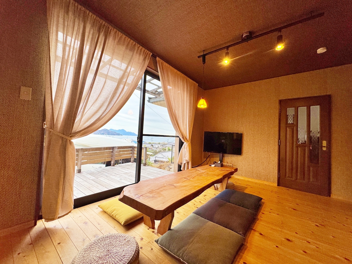 Ein haustierfreundliches privates Gasthaus hat im „Kirikushi Coastal Village“ eröffnet, einem traditionellen japanischen Hauskomplex auf der Insel Etajima, einer Insel im Seto-Inlandmeer in der Präfektur Hiroshima!Haustiere erlaubt (bis zu 2 kleine Hunde unter 7 kg) Ruhige Freizeit auf der Insel Setouchi ruhiges Wasser mit wenigen Wellen, Aussicht, umgeben von Bergen und Feldern, Ein altes Haus mit traditioneller Atmosphäre. Ich fühle mich nostalgisch, wenn ich komme. Angeln oder am Ende eines Urlaubs oder einer Arbeit zum Meer gehen oder nachts den Sternenhimmel beobachten, während er in der ruhigen Natur ein Feuer macht. Tauche ein in den Alltag eines solchen Insellebens. Es gibt verschiedene Geschäfte in dieser Anlage, und du kannst zusätzlich zu dieser Anlage andere Aktivitäten wie SUP (April bis Oktober), Fahrradverleih, Angelerlebnisse und andere Aktivitäten vorstellen! Du kannst auch Grillabende, Lagerfeuer und Fischgerichte in der Einrichtung genießen!(Reservierung erforderlich)